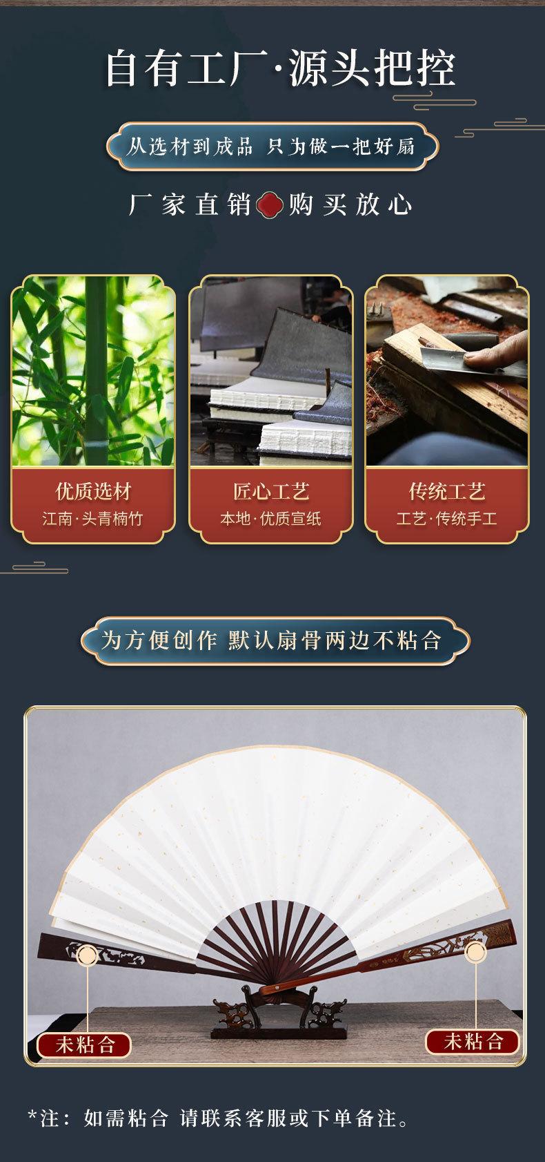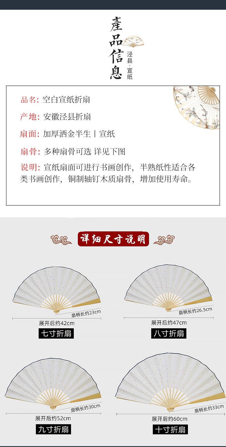Abanico plegable de papel Xuan, abanico de pintura en blanco personalizado, abanico publicitario de 9/10 pulgadas, abanico de pintura de caligrafía antigua, venta al por mayor