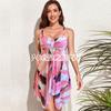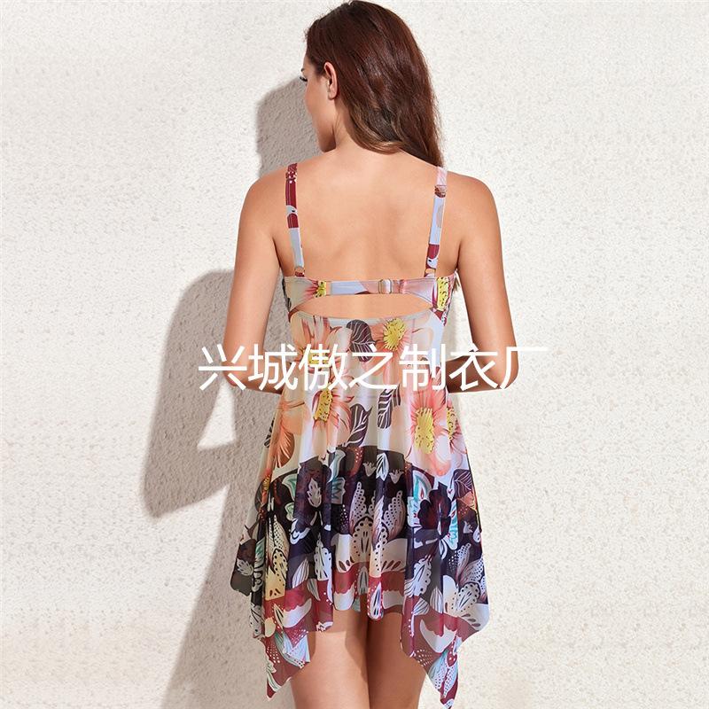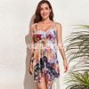 Traje de baño de talla grande para mujer, nuevo traje de baño plisado ajustado con falda estampada digital, transfronterizo europeo y americano, 2023