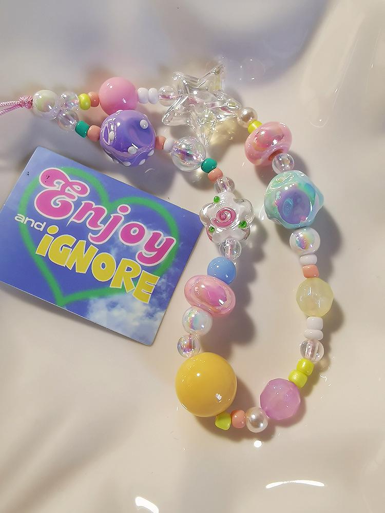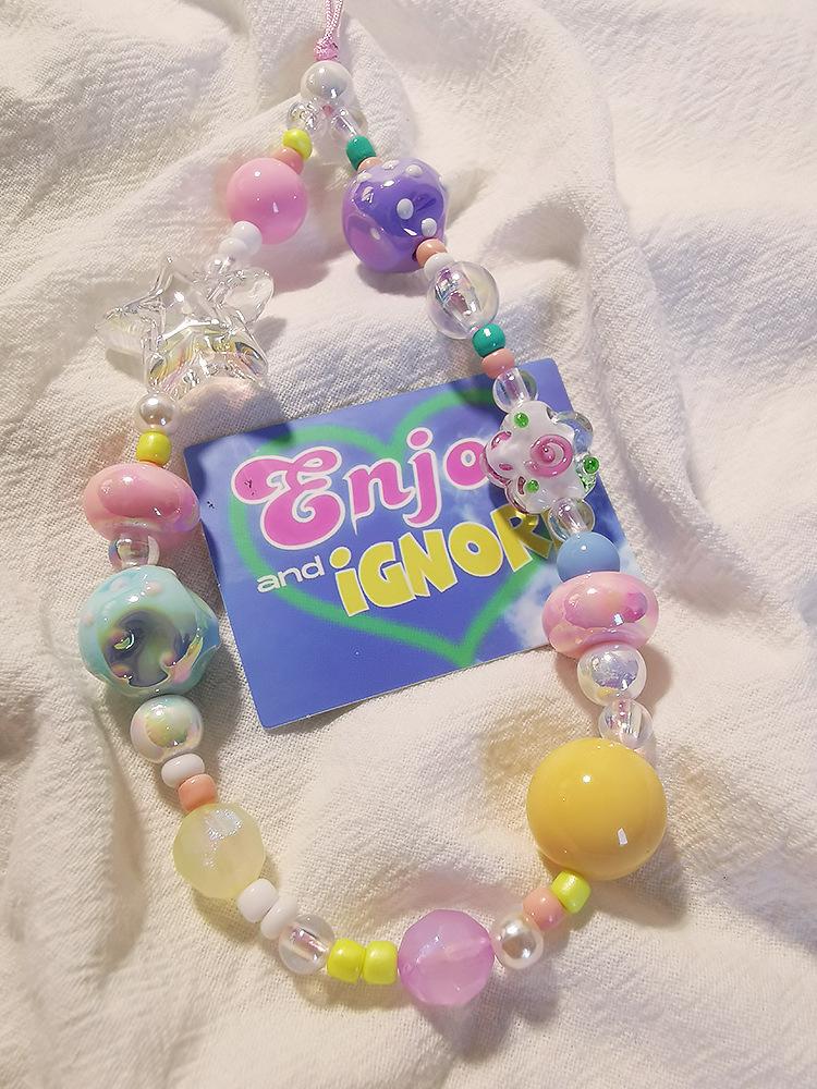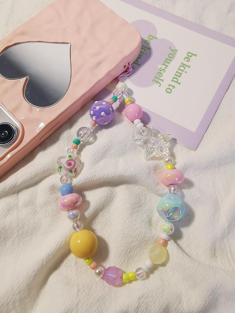 Cordón para teléfono móvil con colgante de dopamina para niña, pulsera corta de cuentas coloridas, colgante para cámara CCD antipérdida