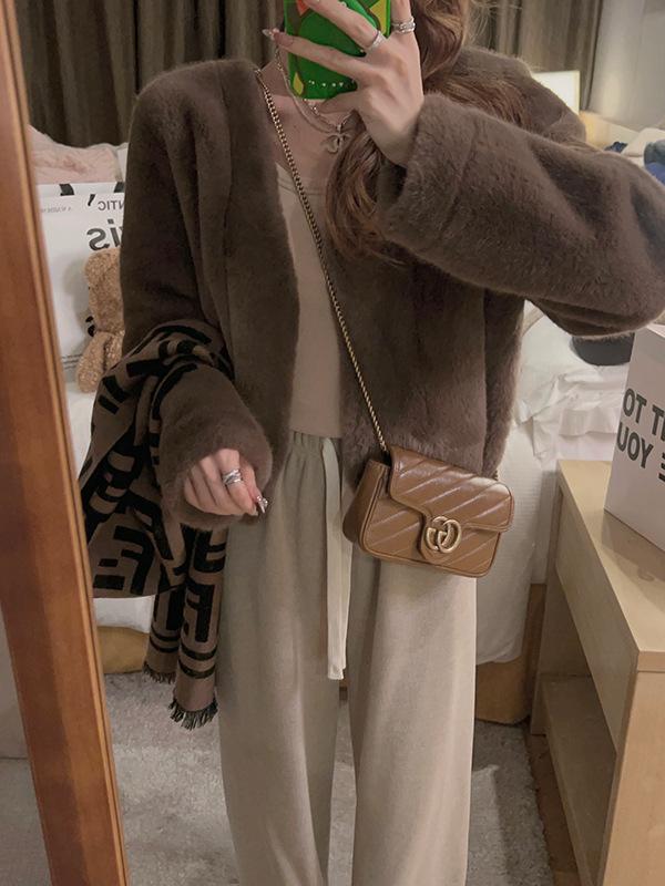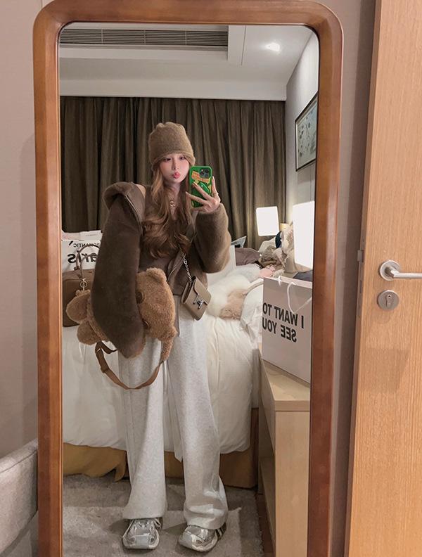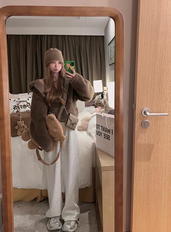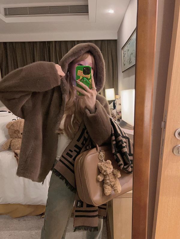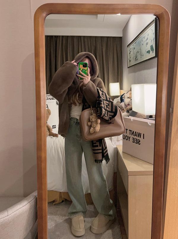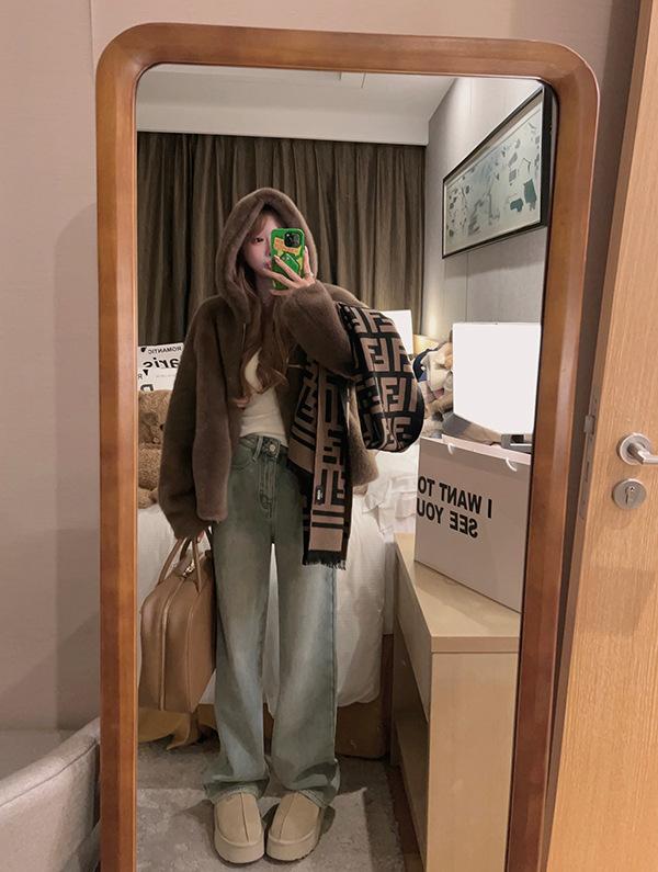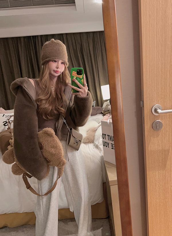 El todo pertenece aUn pelaje más cotidianoNo demasiado exagerado pero lo suficientemente cómodo para usarEncapuchadoTambién se añade diseño de bolsillo Conveniente para el uso diarioEl cuello en V no tiene bolsillos.