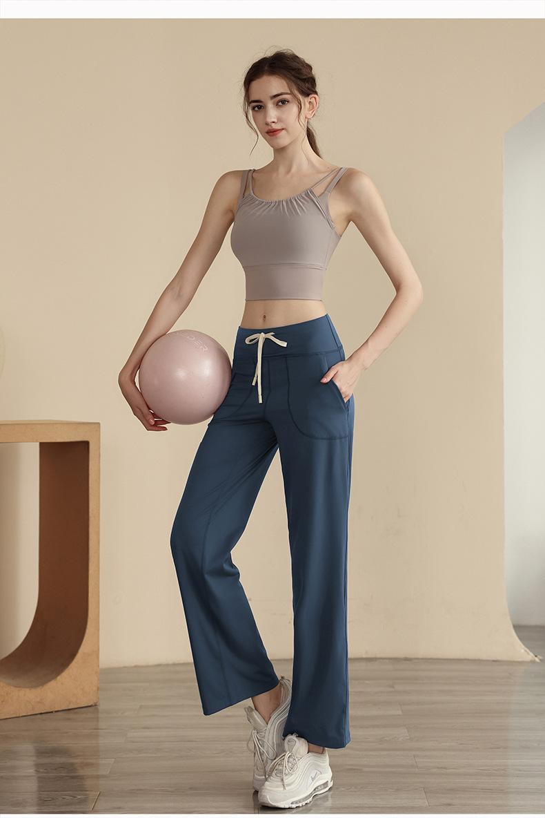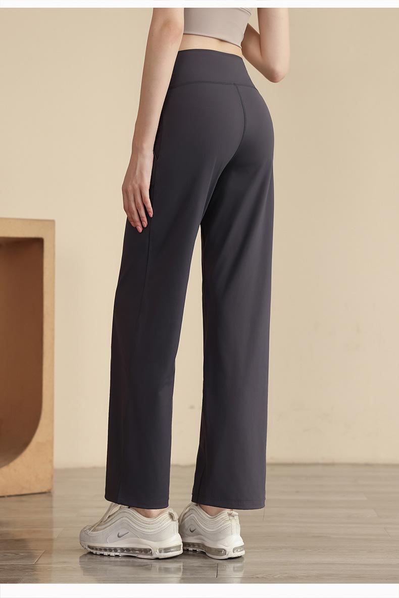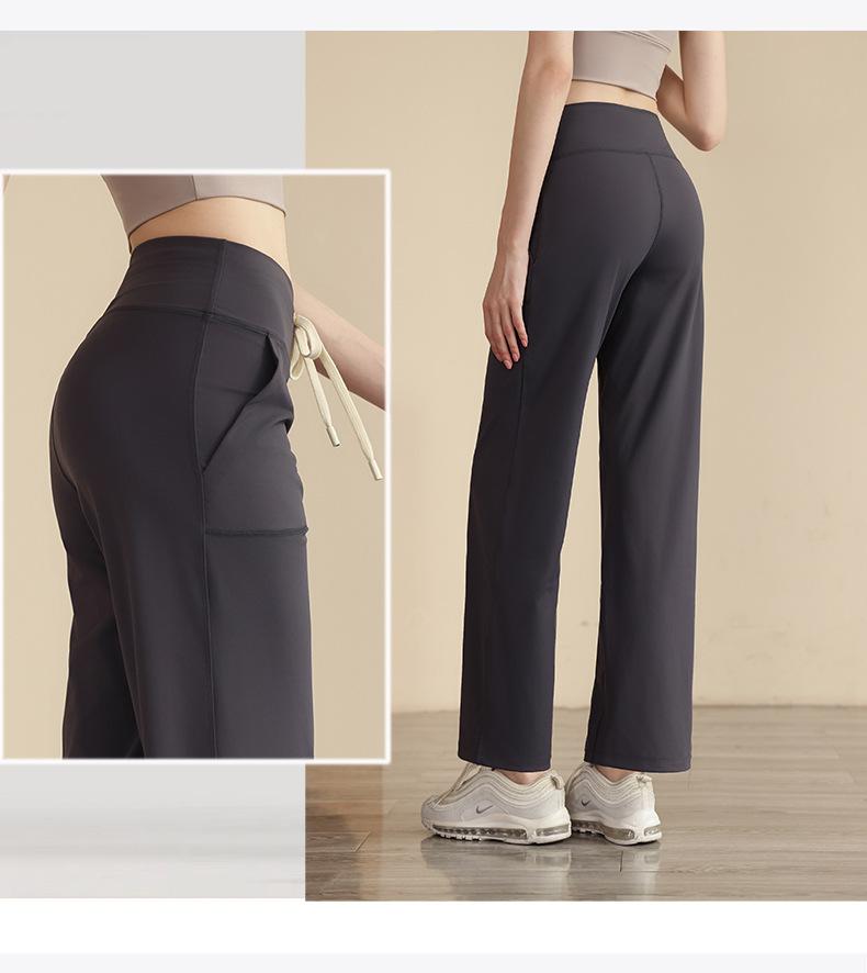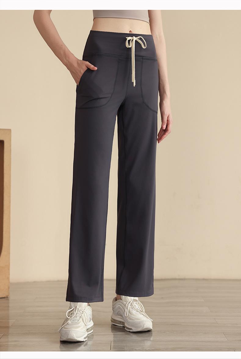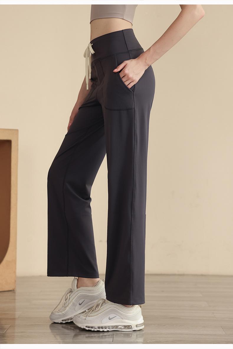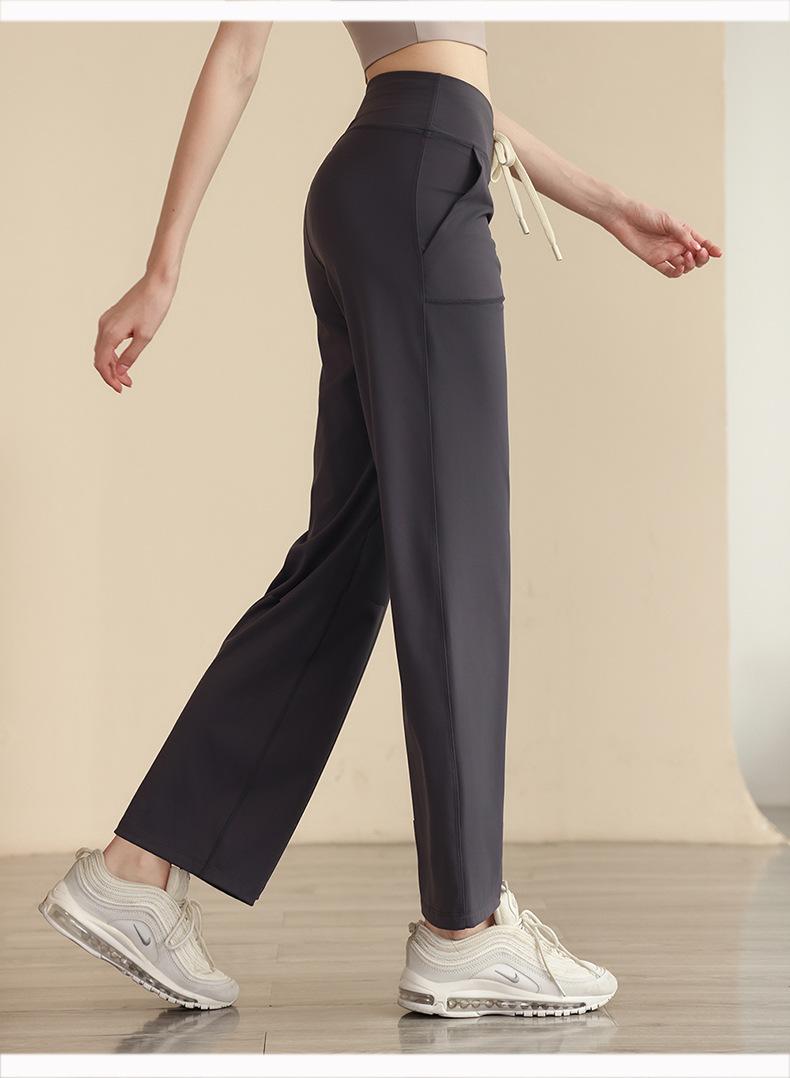 Pantalones rectos de bolsillo para mujer de cintura alta, pantalones deportivos casuales de fitness con corte holgado y adelgazante de pierna ancha para uso exterior