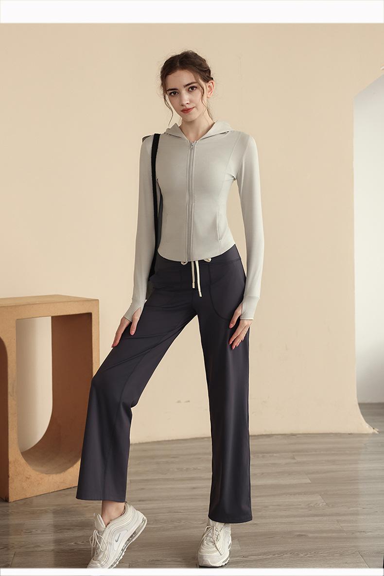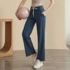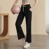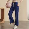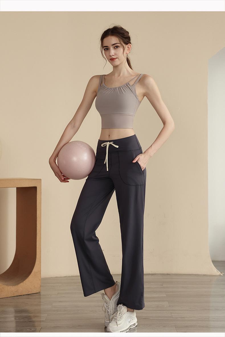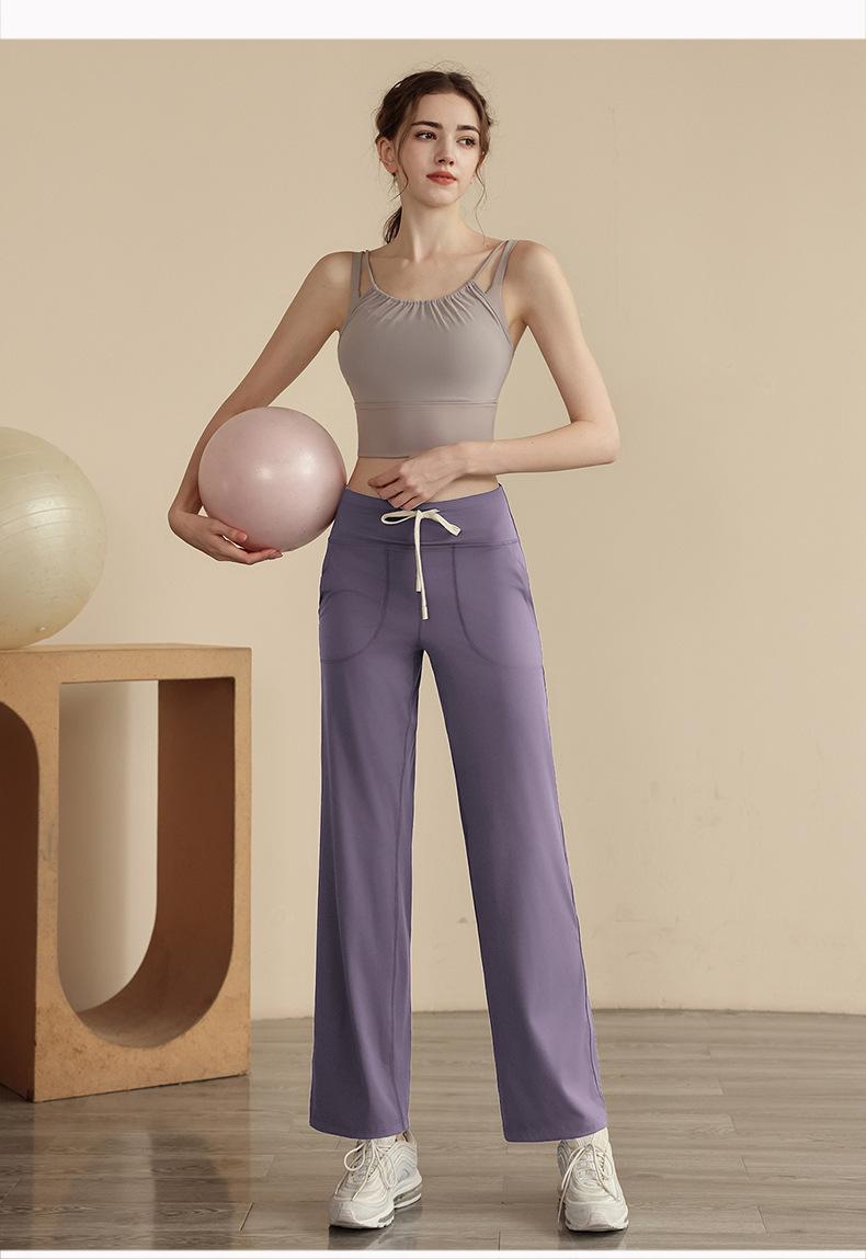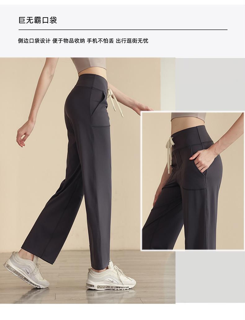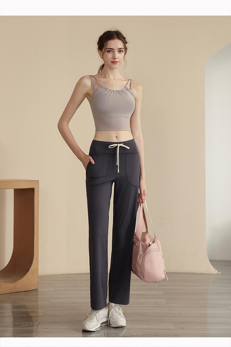 Pantalones rectos de bolsillo para mujer de cintura alta, pantalones deportivos casuales de fitness con corte holgado y adelgazante de pierna ancha para uso exterior