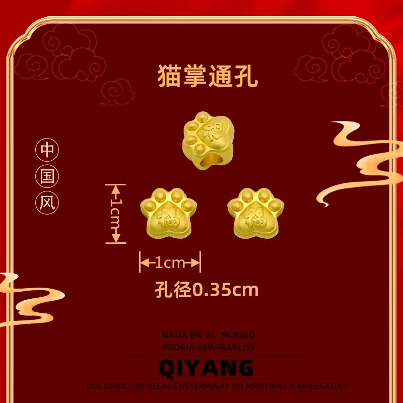 Collar de aleación de zinc con agujero en la palma de gato dorado de Fasha antiguo, accesorios de joyería DIY, pulsera y collar con cuentas a juego.