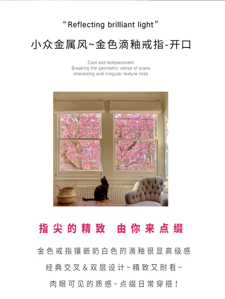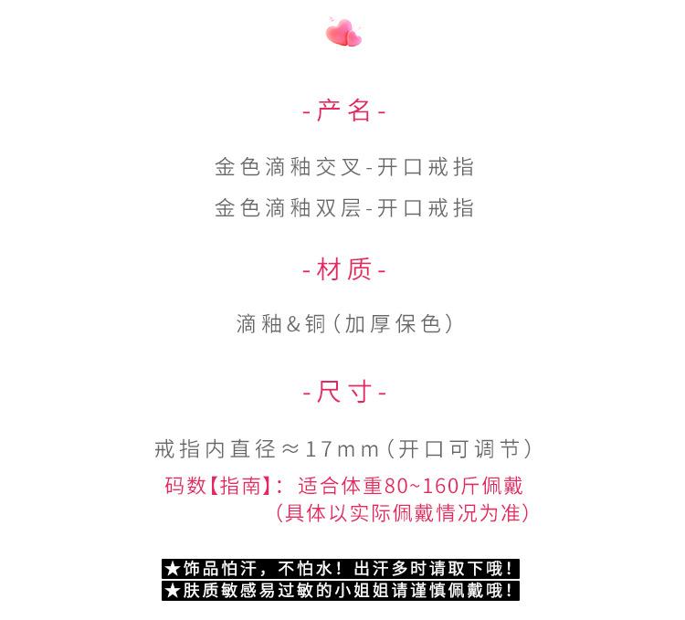 Gold drop glaze cross-open ring, Gold drop glaze double layer-open ring, Golden drop glaze cross + double layer-open ring