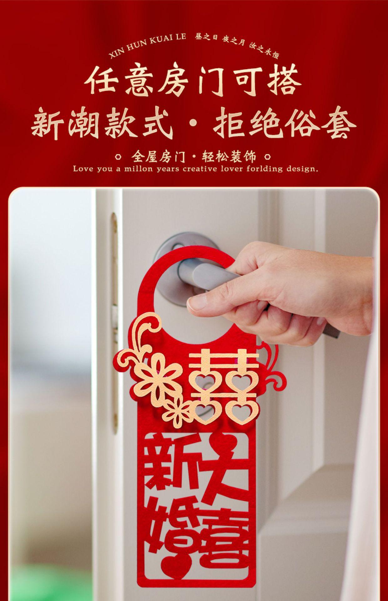 Decoración de habitación de boda manija de puerta adornos de personajes felices decoración de puerta de boda sala de estar colgantes pequeños casa nueva suministros de boda