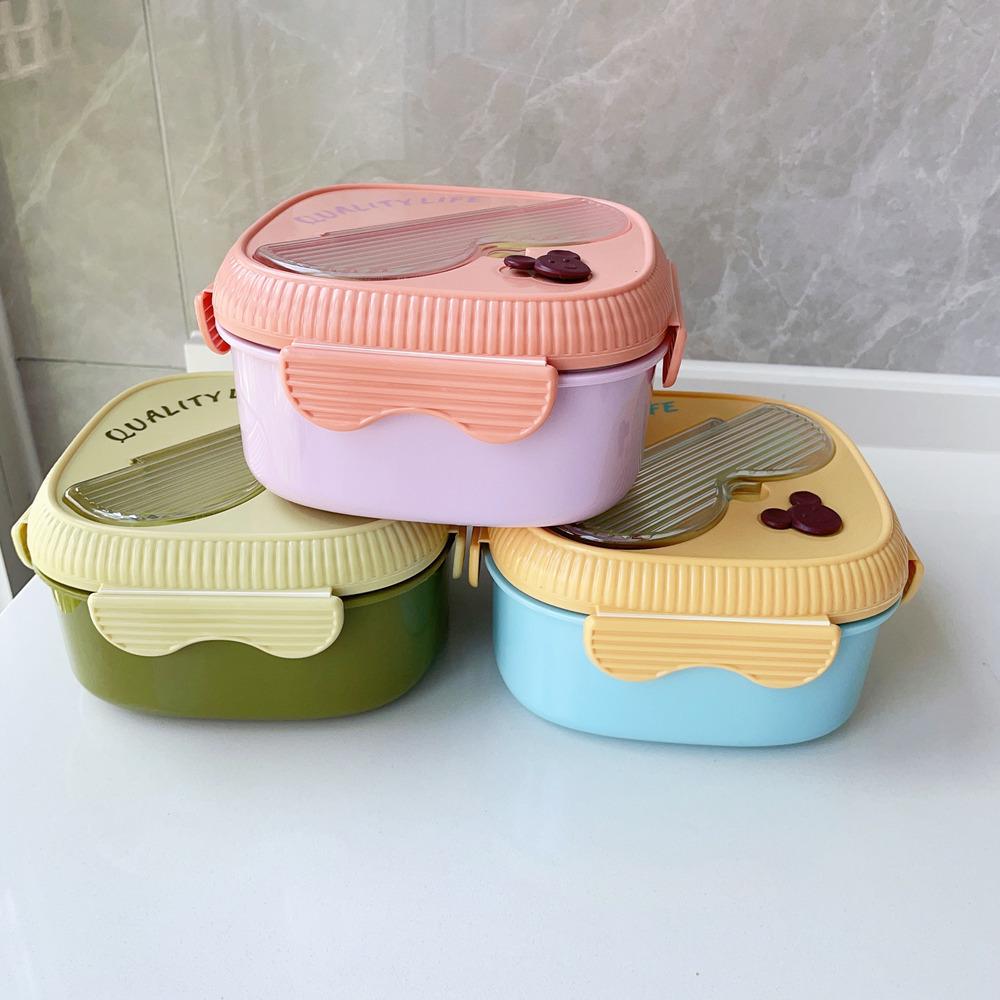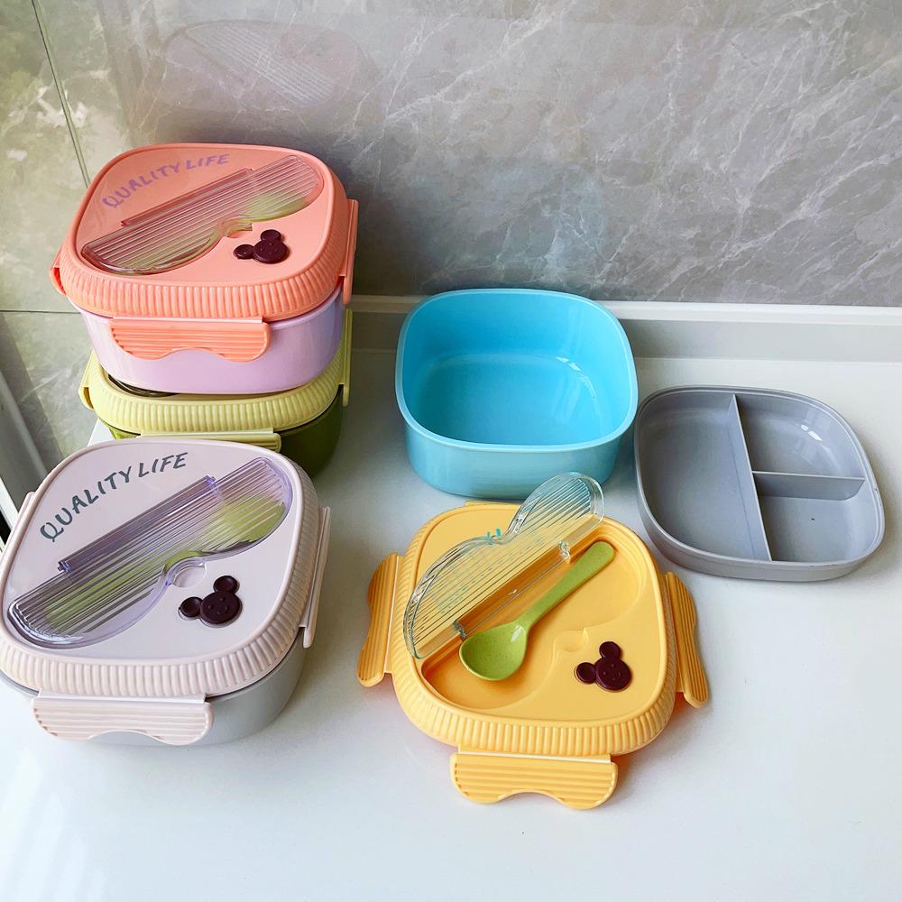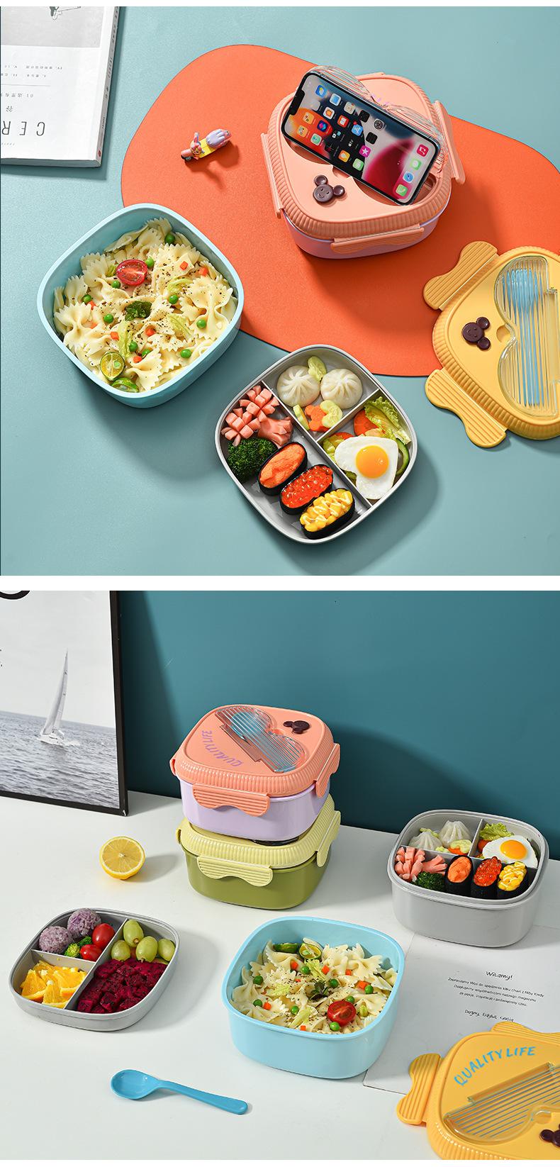 Nueva lonchera de doble capa para estudiantes, lonchera para mantener la frescura, lonchera para calentar en microondas, lonchera cuadrada peinada con tapa