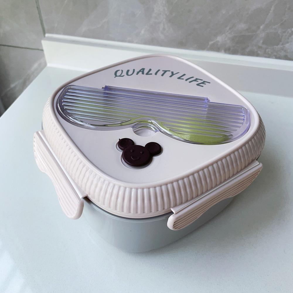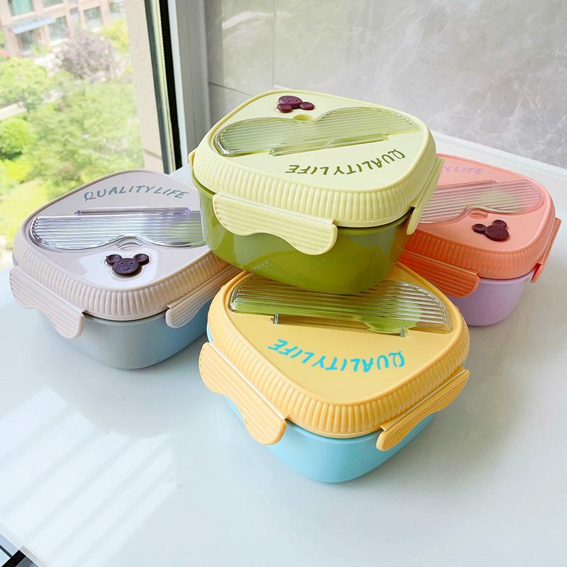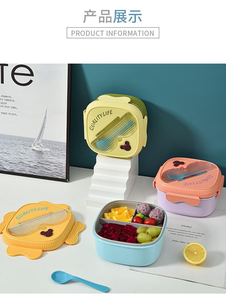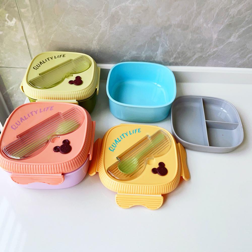 Nueva lonchera de doble capa para estudiantes, lonchera para mantener la frescura, lonchera para calentar en microondas, lonchera cuadrada peinada con tapa