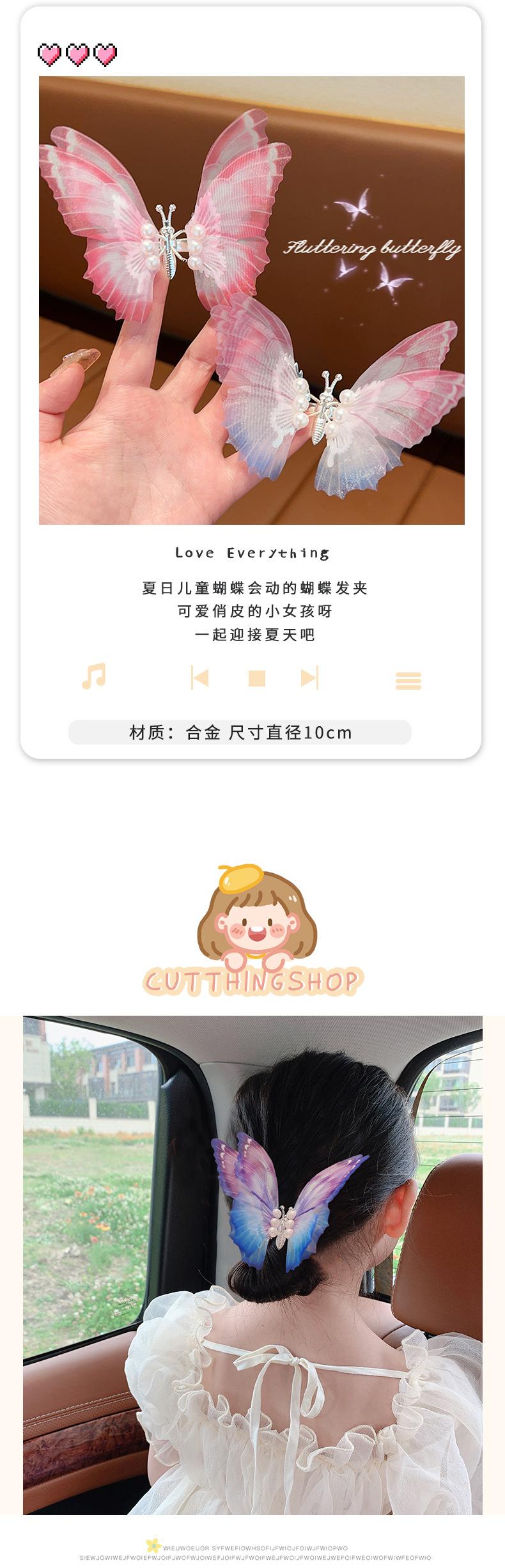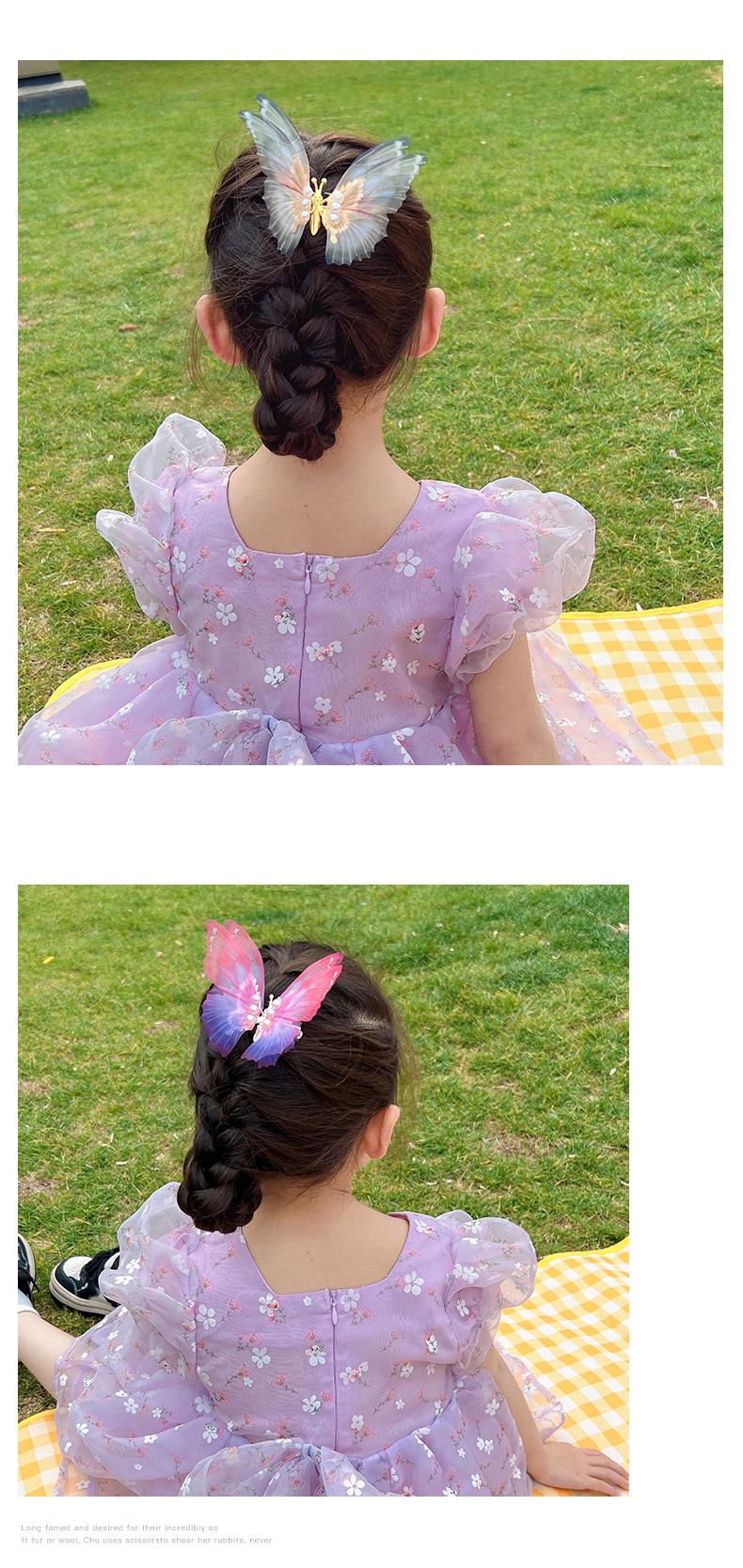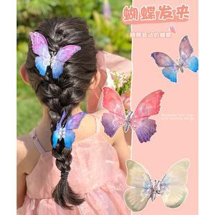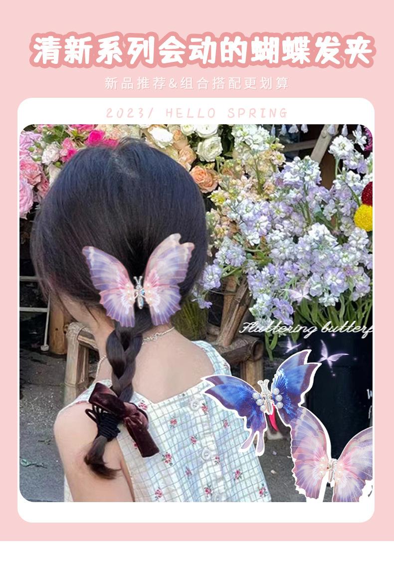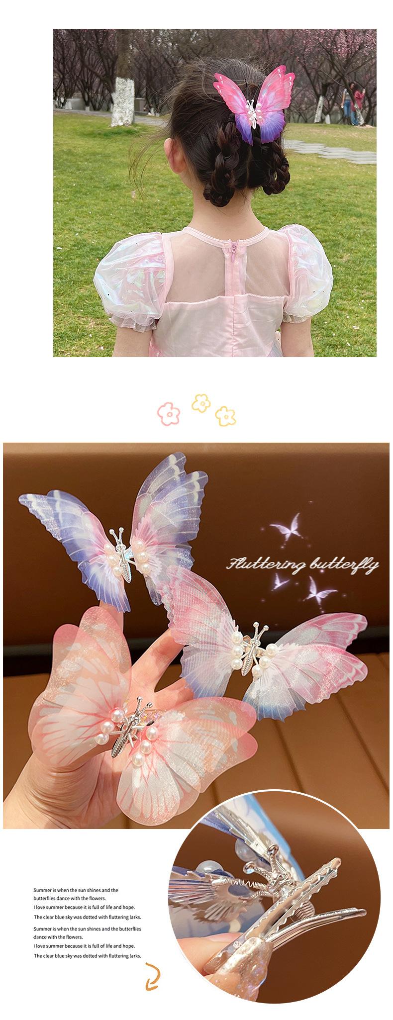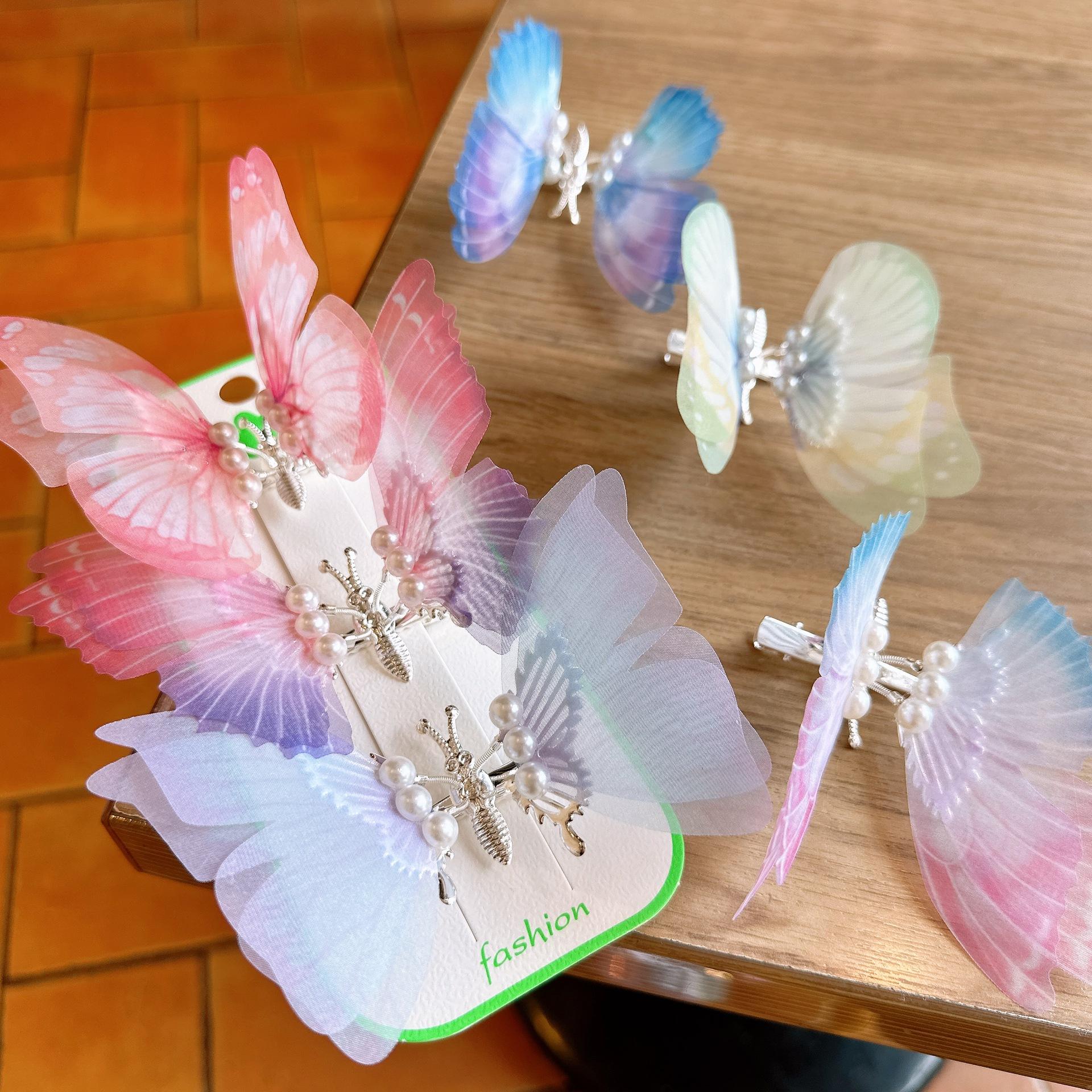 Horquilla de mariposa de simulación tridimensional personalizada para niños con color degradado, súper hada, accesorios para el cabello de perlas, linda, elegante, estilo antiguo, pinza de una palabra |