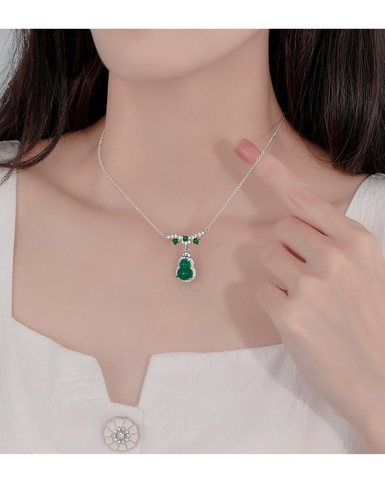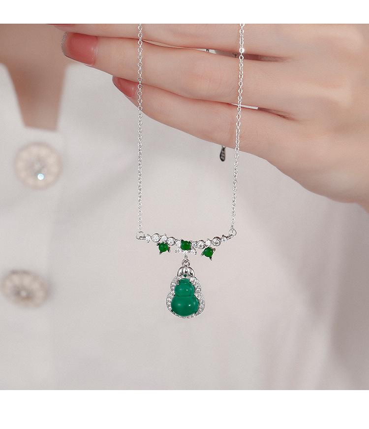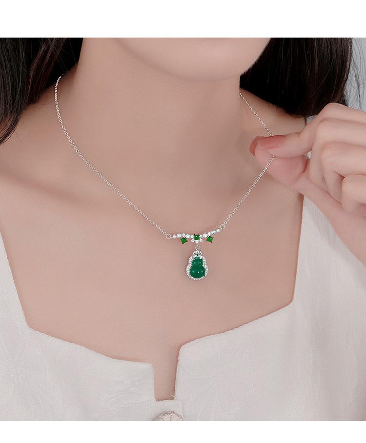 Collar de calabaza esmeralda para mujer, ligero, lujoso, elegante, de alta gama, con cadena de clavícula de jade, estilo nacional, moderno y elegante.