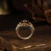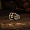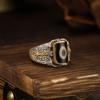 Anillo de cuentas estilo Xizang con incrustación de cuentas de ojo artificial, anillo vintage angustiado de temperamento de alta calidad, anillo de dedo índice de boca abierta