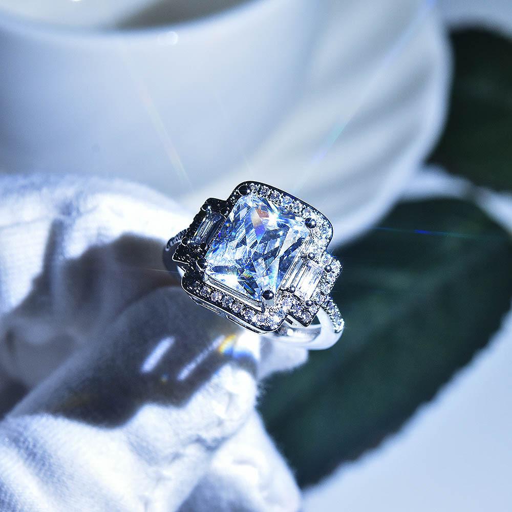 Anillo de Apertura Cuadrada Princesa Diamante Mosan Color D Simulación Ocho Corazones y Ocho Flechas Chapado PT950 Anillo de Boda de Oro Blanco para Mujer Joyería