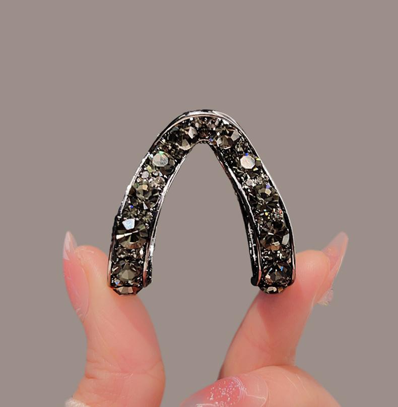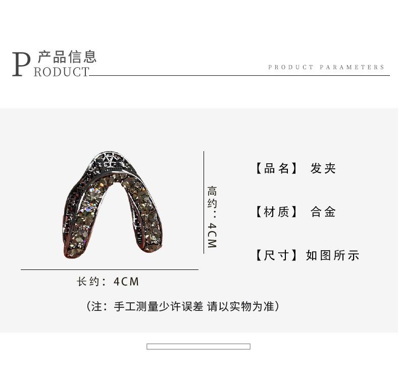 Artefacto fijador de coleta alta media bola liga para el cabello horquilla horquilla femenina horquilla femenina super flash pedrería grande en forma de V pinza mediana