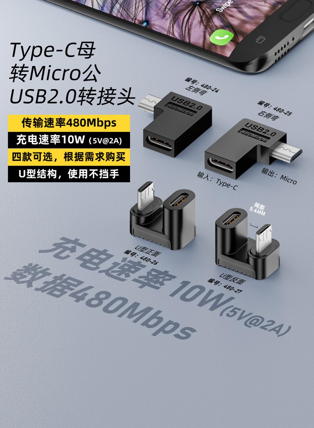480-26C female to micro male U-shaped front, 480-27C female to micro male U-shaped reverse side, 480-24C femal...