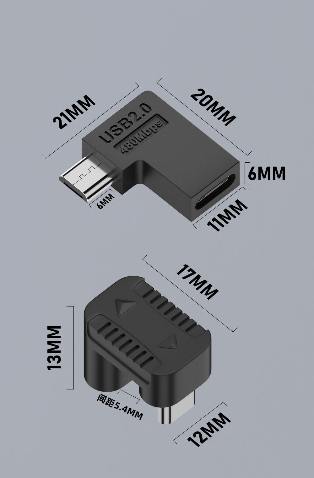 Adaptador tipo c hembra a micro macho soporte interfaz de micrófono carga transmisión de datos codo adaptador en U