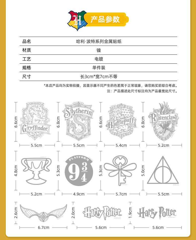 Mercancía Original de Warner Harry Potter Pegatinas Metálicas para Cuadernos, Teléfonos, Equipaje, Patinetas y Teléfonos Móviles
