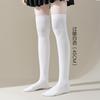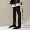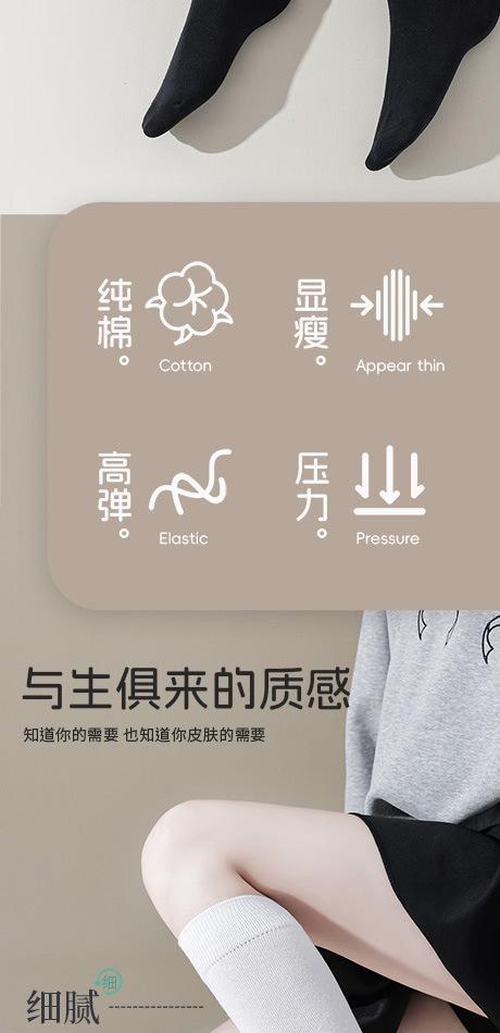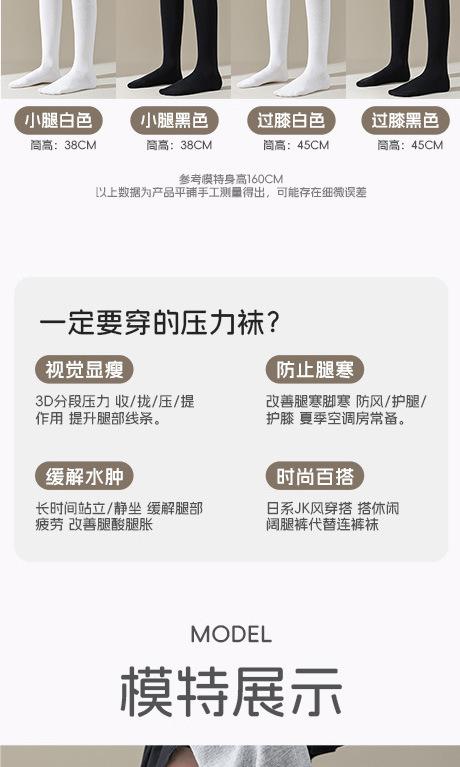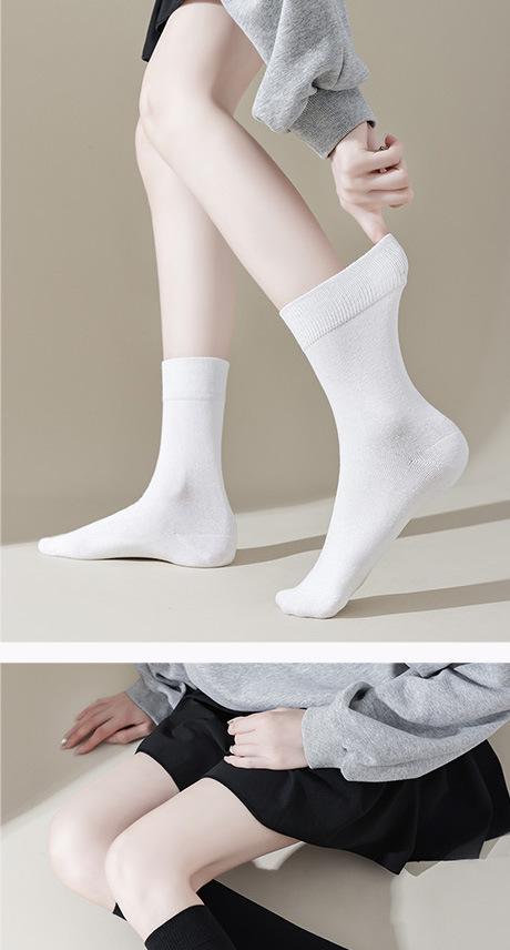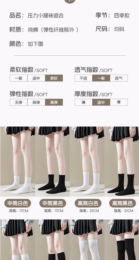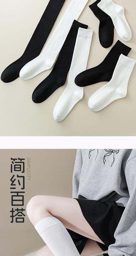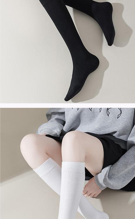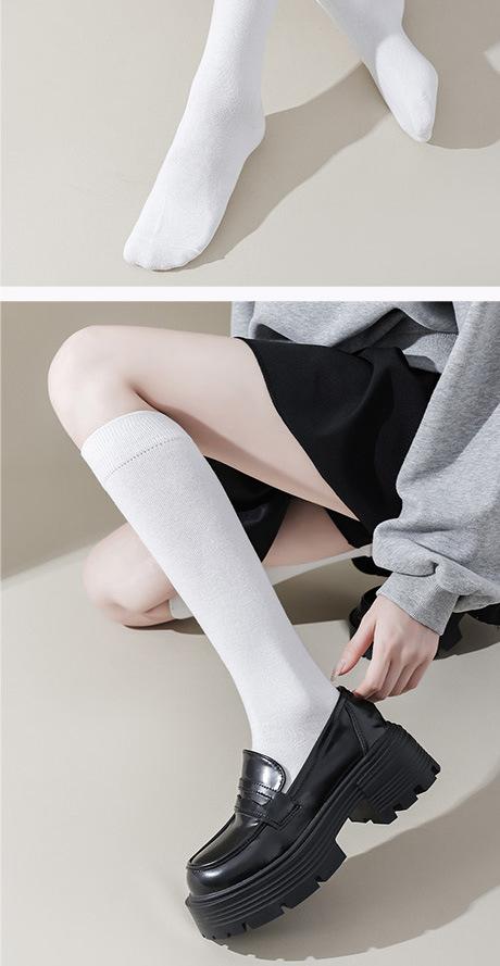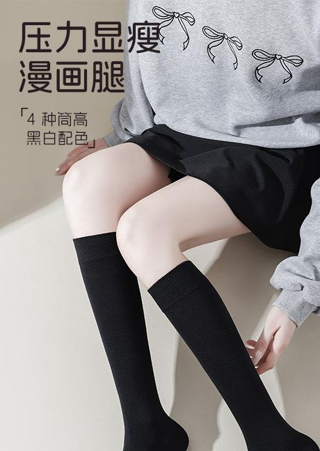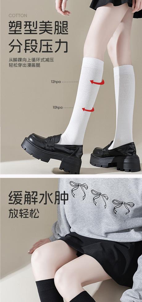 Calcetines de algodón para mujer, otoño e invierno, hasta la pantorrilla, negros, hasta la rodilla, finos, de presión, JK, de color liso