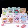 Bolsa de regalo con dibujos animados a rayas, con ocho bordes sellados, con forma de copo de nieve, crujiente, de turrón, independiente, con cierre de plástico, paquete de 50