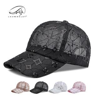 Sombrero de lentejuelas de moda de estilo coreano para mujer, gorra de béisbol de malla transpirable de verano, gorra de sol informal, gorra de pico de pato |