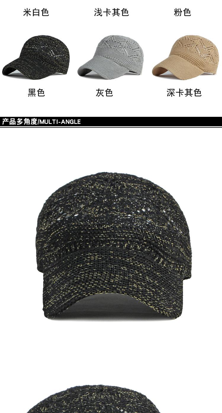 Sombrero transfronterizo al por mayor, sombrero para el sol de verano para exteriores, gorra de béisbol transpirable de malla hueca para mujer, gorra de pico de pato de punto |
