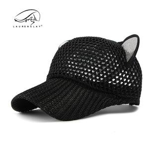 Sombrero de moda de estilo coreano para mujer, gorra de verano de malla hueca transpirable con pico de pato, gorra de béisbol de malla completa, sombrero para el sol con orejas de gato |