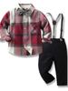 Traje de caballero con tirantes y cuello de manga larga a cuadros de otoño para niño, estilo europeo y americano