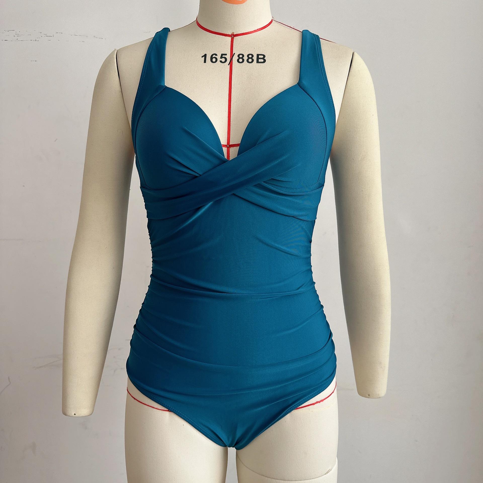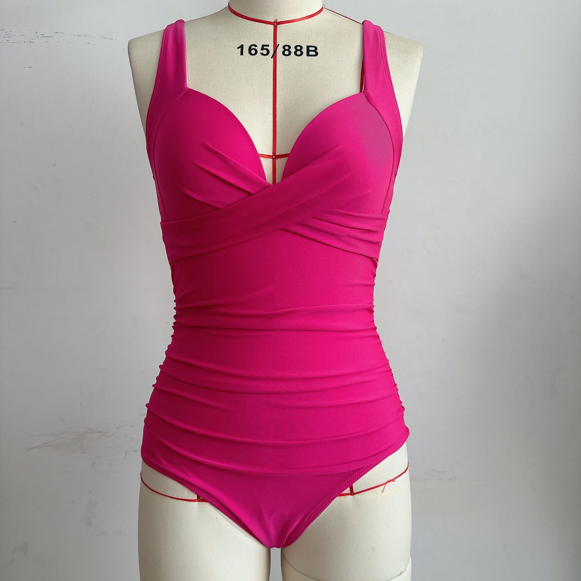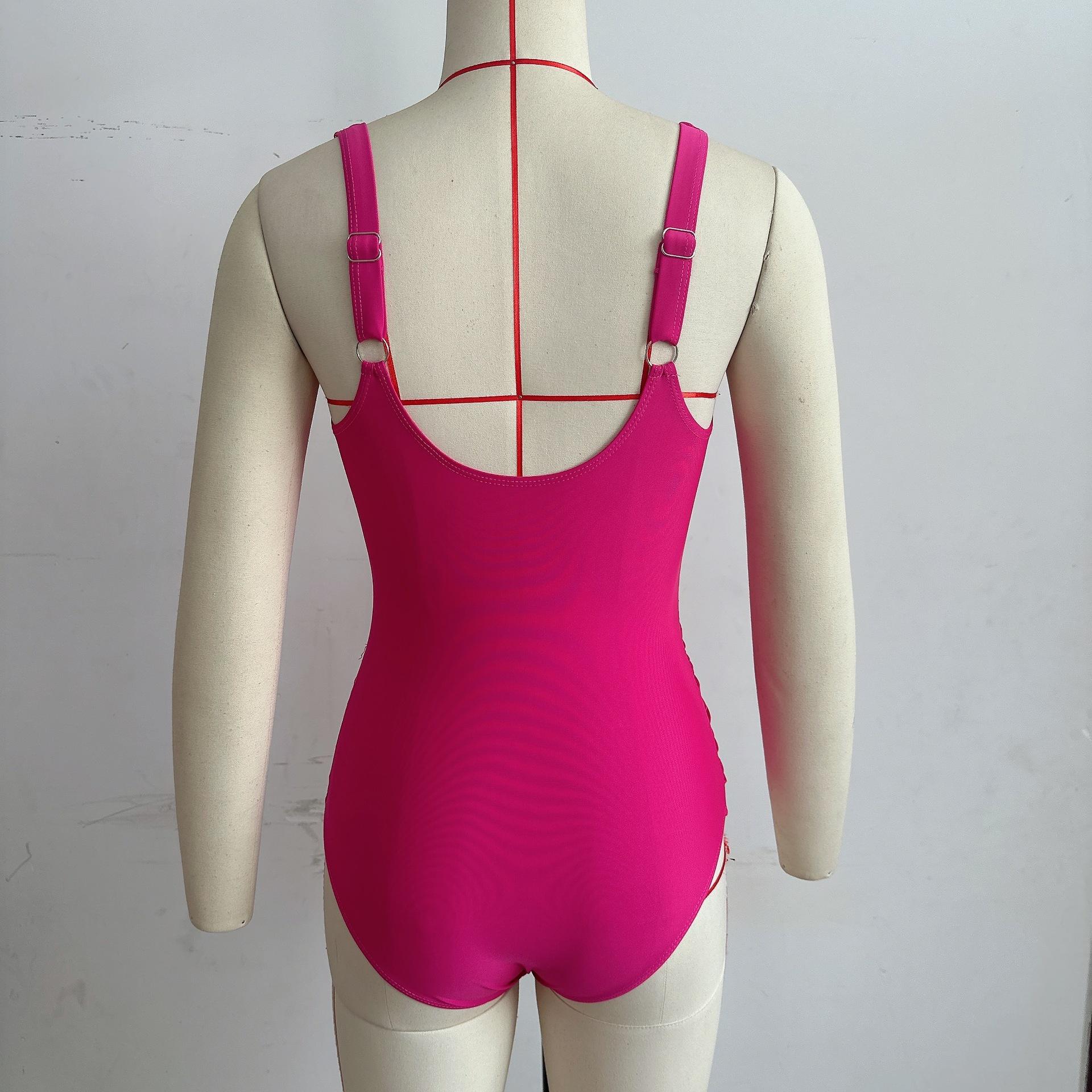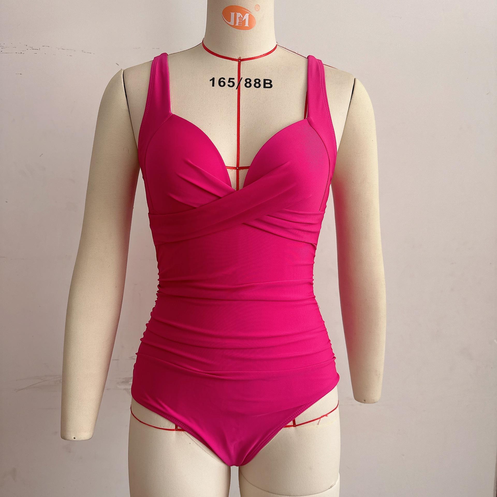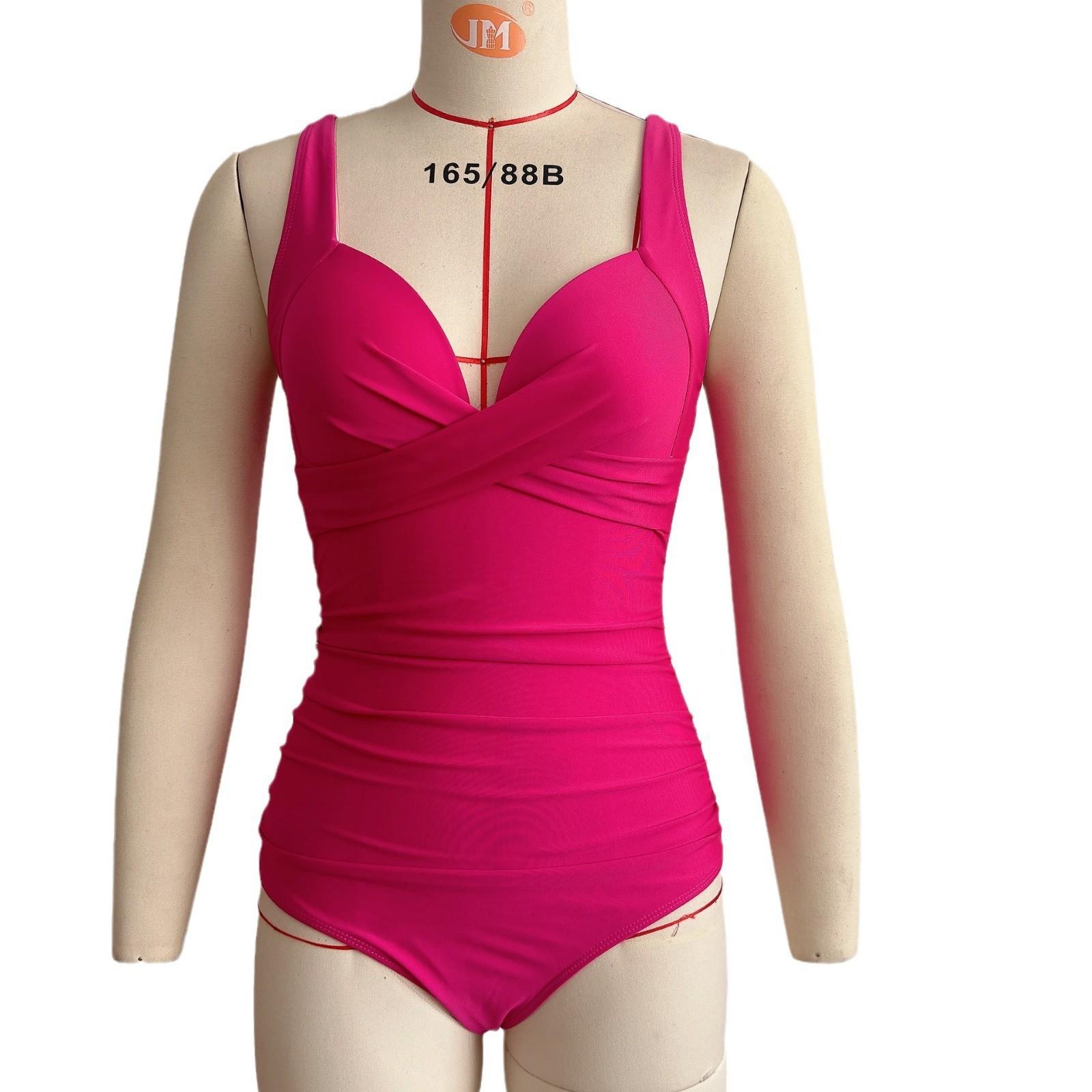 Traje de baño entero nuevo europeo y americano 2024 para mujer, traje de baño entero de color sólido con copa dura push up, bikini, traje de baño entero SY3476