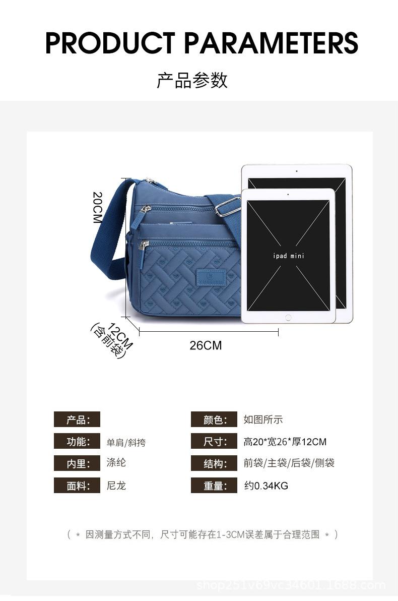 Bolso Nuevo para Mujer Bolso Cruzado de Nailon Ligero de Gran Capacidad Bordado Bolso de Hombro Multifuncional Bolso para Madre de Mediana Edad