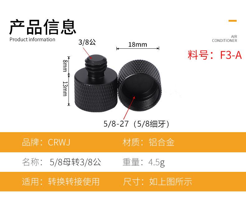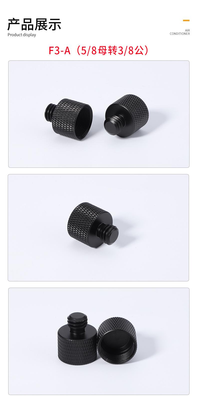 Material number f3a aluminum black 3/8 male to 5/8 female