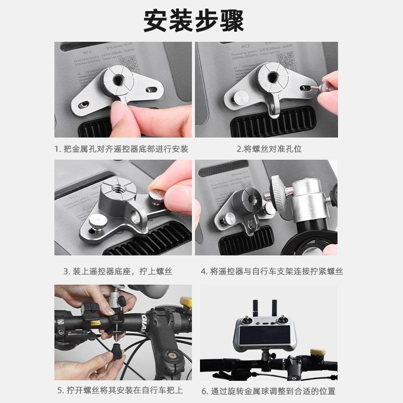 3. Base de control remoto de aleación de aluminio mecanizada por CNC, duradera y más segura; la base del control remoto tiene orificios roscados de 1/4 y orificios para correa, que se pueden conectar a soportes para bicicleta, trípodes y correas.