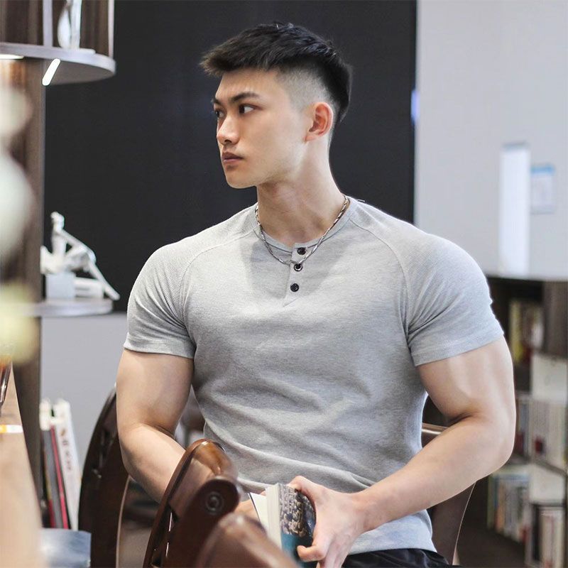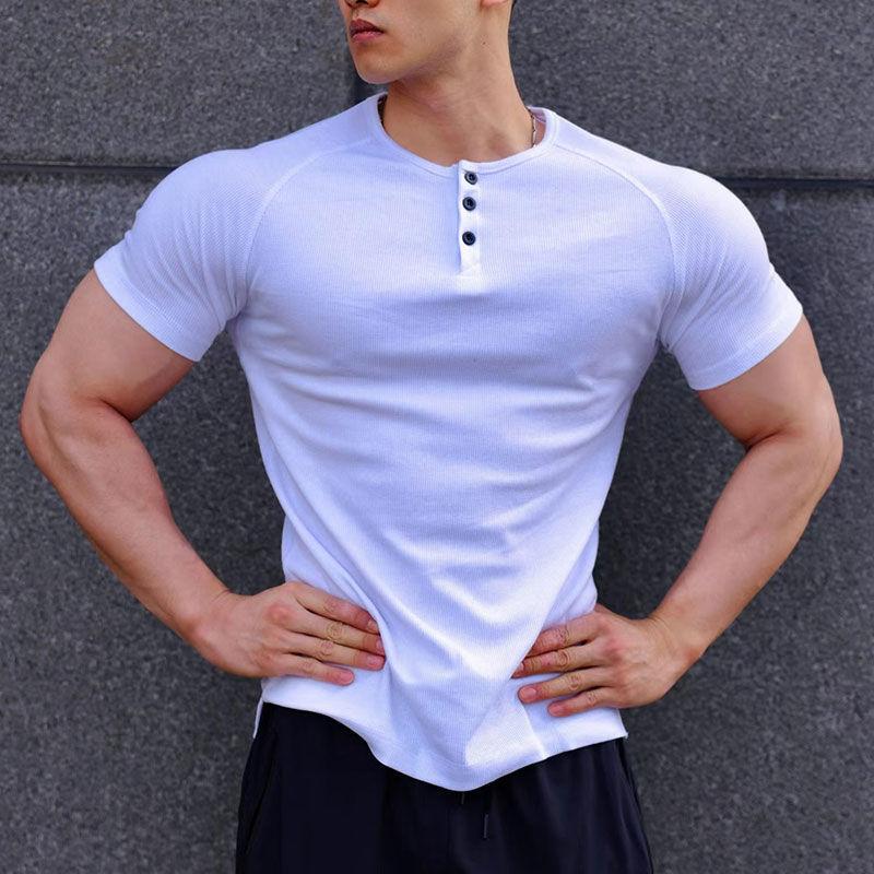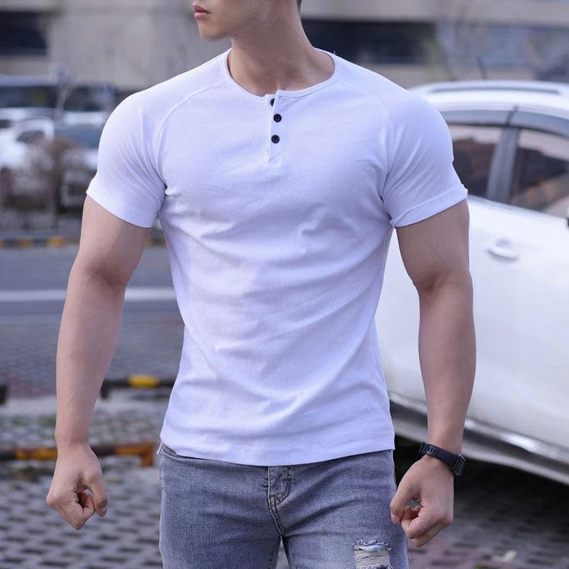 Compra Camiseta deportiva Henry Sugiyama de color liso para hombre, estilo casual, de verano, ajustada, a rayas, estilo casual. al por mayor en Joom.pro