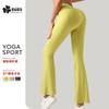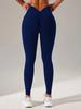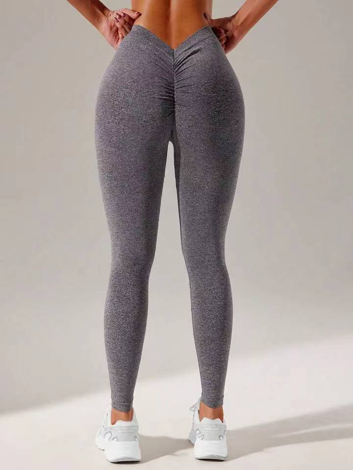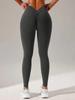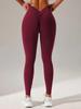 Pantalones de yoga de alta calidad con cintura en V y doble cadera para mujer, mallas deportivas para exteriores, fitness, correr, entrenamiento, color melocotón