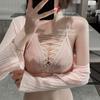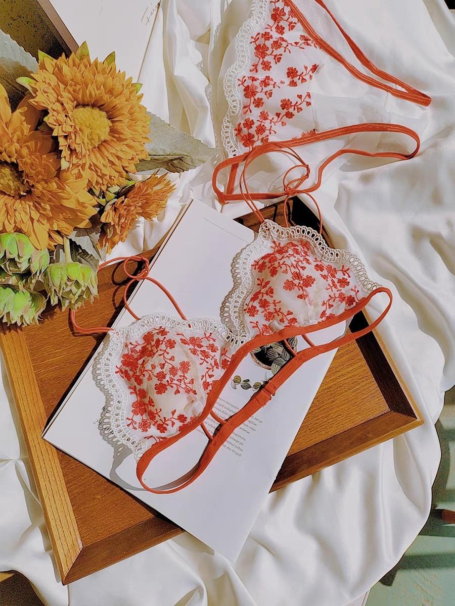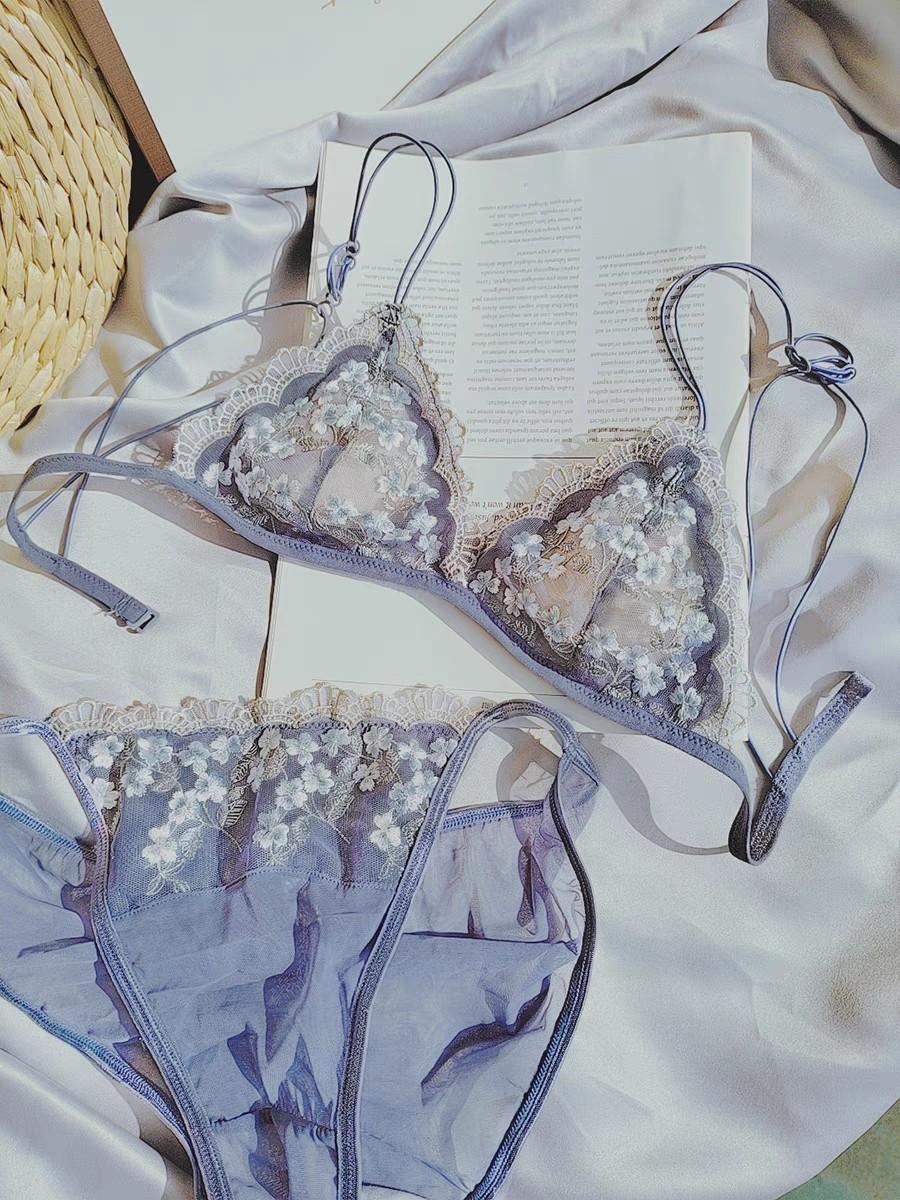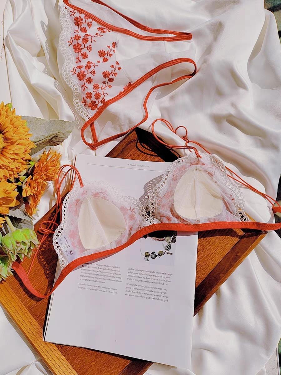 Ropa interior de encaje bordado ultrafino estilo francés sexy puro deseo copa triangular inalámbrica espalda de belleza sujetador de tiras finas traje de niña