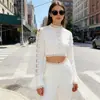 Compra Conjunto de Dos Piezas 2026 Estilo Nuevo de Celebridades Europeas y Americanas con Adorno de Encaje Hueco Francés, Mangas de Campana, Top Corto y Pantalones Skinny al por mayor en Joom.pro