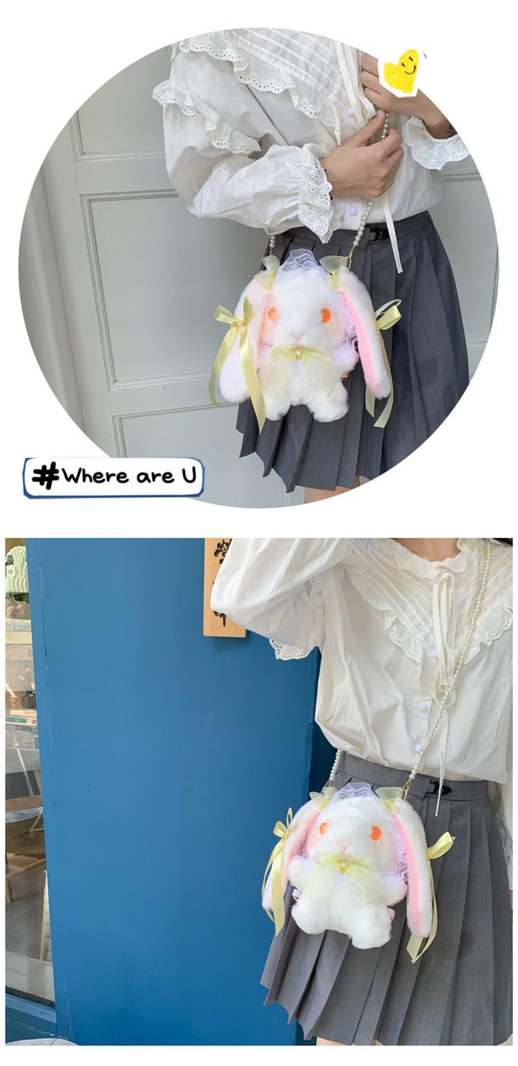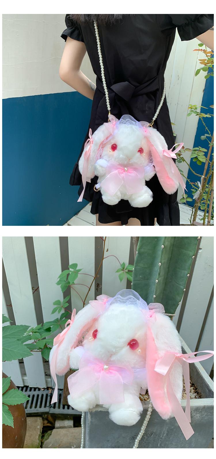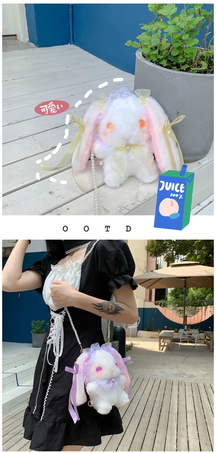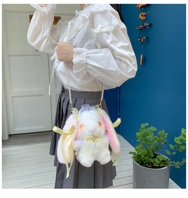 Bolso bandolera estilo coreano con diseño de conejo de dibujos animados de Lolita, bolso de peluche para niños con diseño de muñeca japonesa.