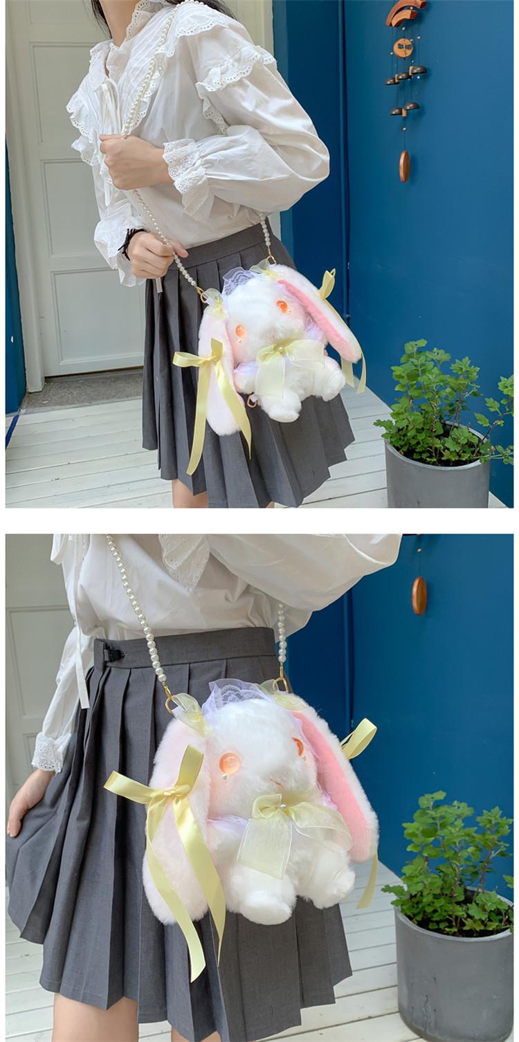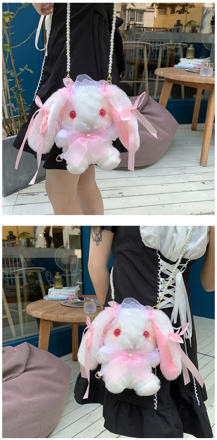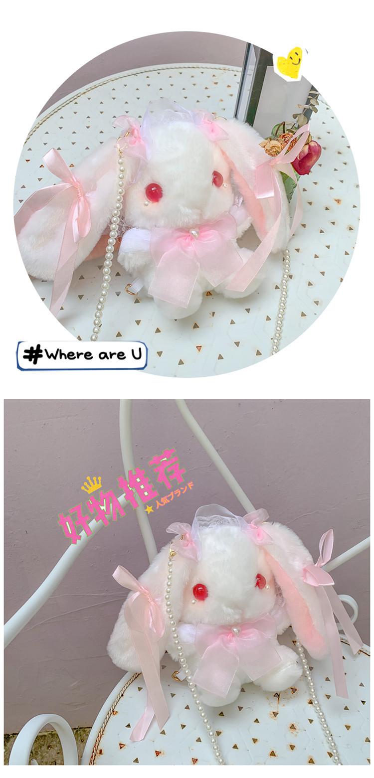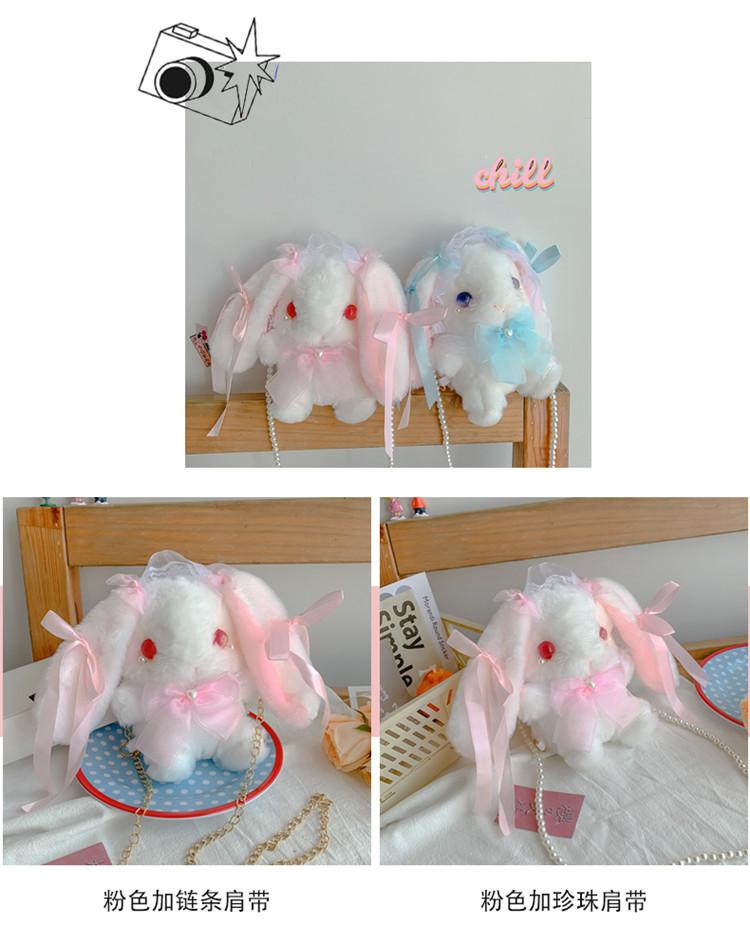 Bolso bandolera estilo coreano con diseño de conejo de dibujos animados de Lolita, bolso de peluche para niños con diseño de muñeca japonesa.