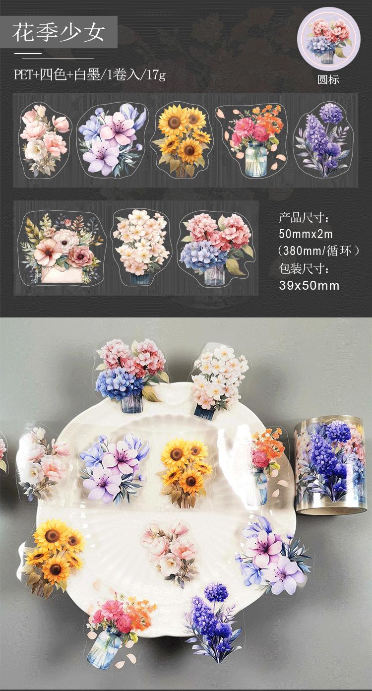Serie de moldes de corte para impresión digital, material de cuenta manual de flores y plantas de PET, pegatina decorativa, collage, cinta de cuenta manual