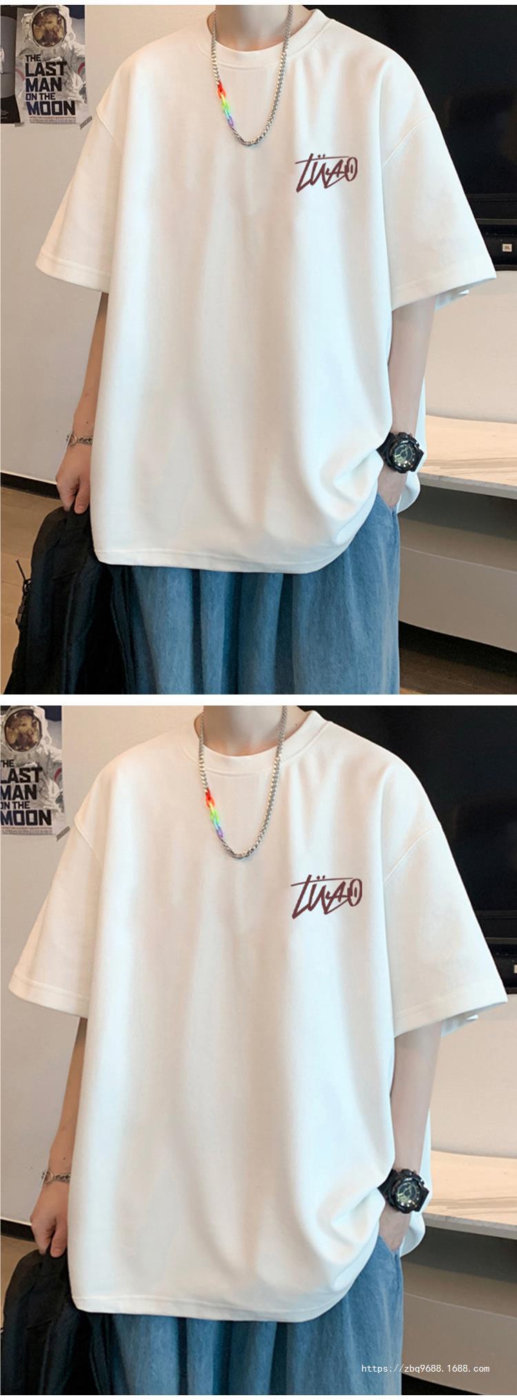 Camiseta de Manga Corta Pesada Gesha para Hombre 2025 Nuevo Verano Algodón Marca de Moda Americana Trendy Suelta Blanca Versátil