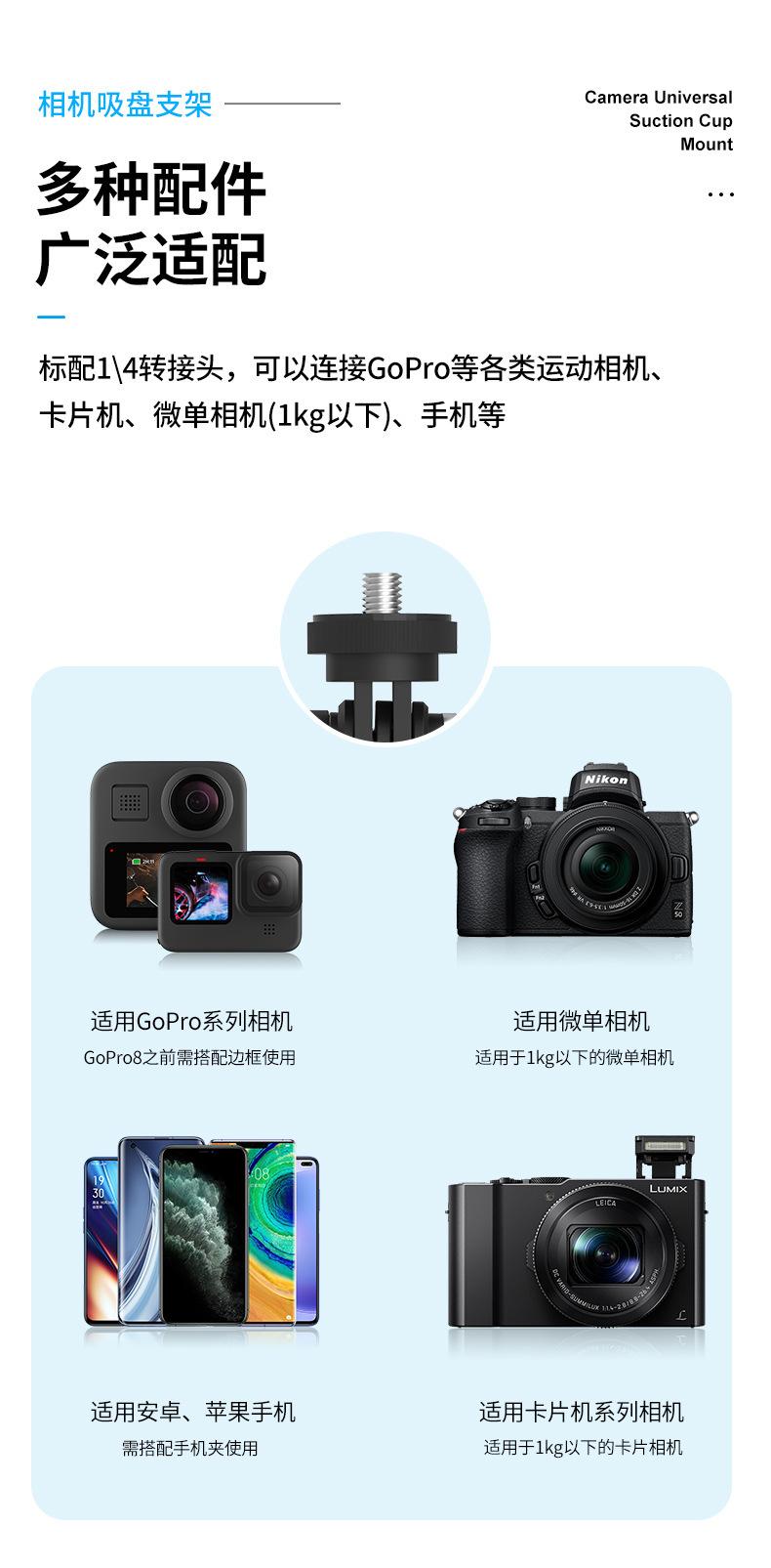 Soporte de Ventosa Universal para Cámara Taixun Gopro13 Dji Osmo 360/Action5/4 Ventosa de Aleación de Aluminio