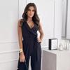 Comercio exterior transfronterizo de Amazon, ropa de mujer europea y americana, moda de verano 2024, pantalones de cintura alta, mono de color liso con tirantes en la cintura
