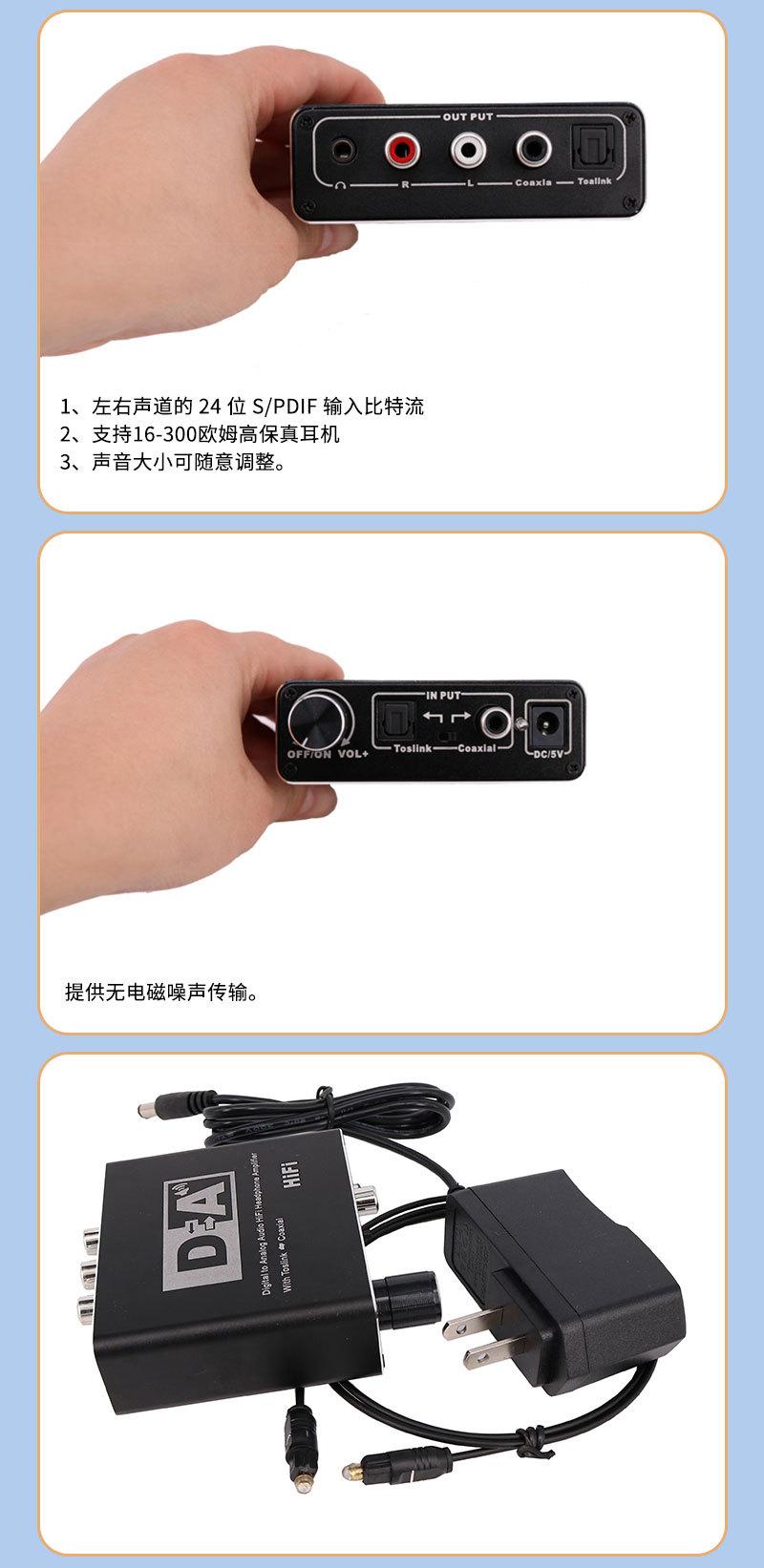 Transfronterizo dedicado a convertidor digital a analógico coaxial a decodificador de audio de 5.1 canales ajuste de banda para auriculares de 3.5
