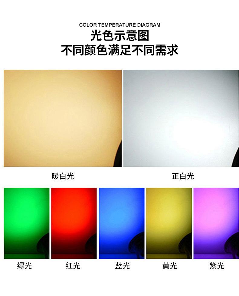 12W warm white light, 12W red/yellow/blue/green (choose one of four), 18W warm white light, 18W red/yellow/blu...
