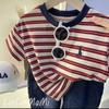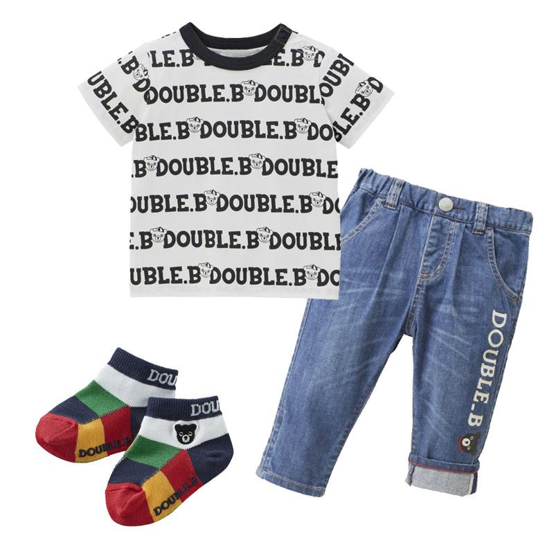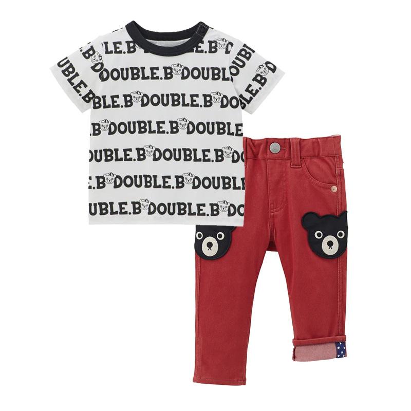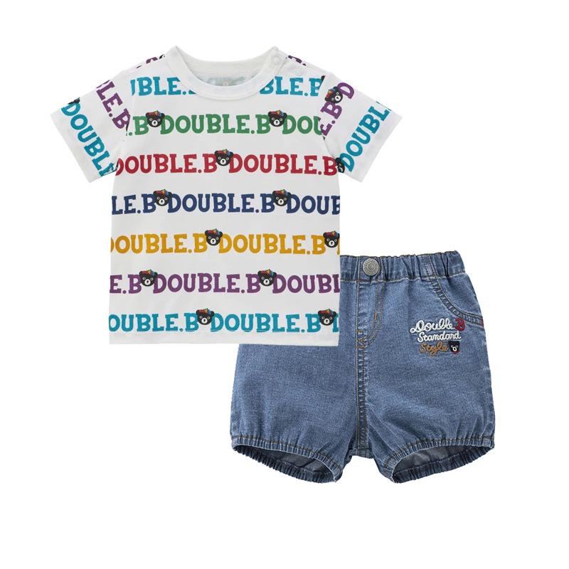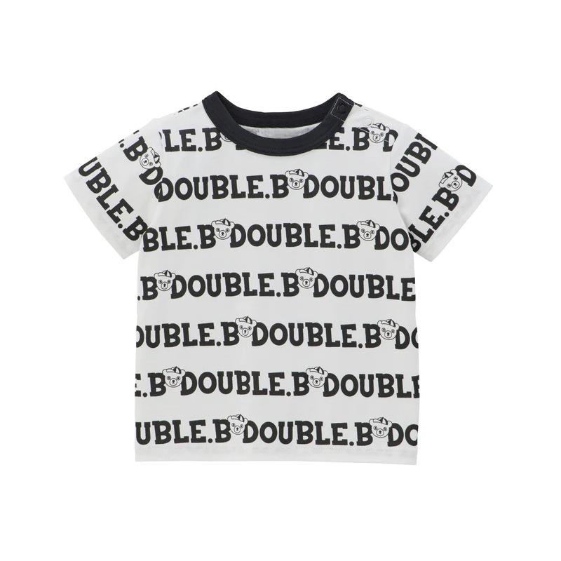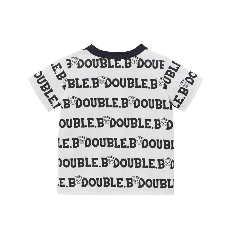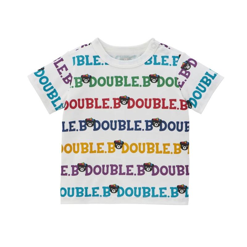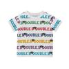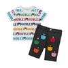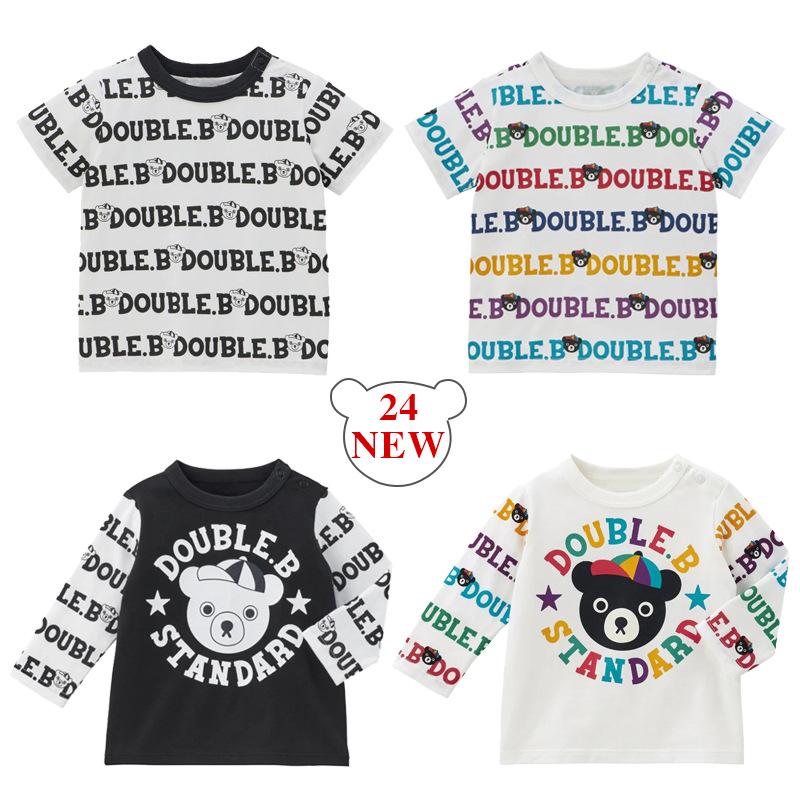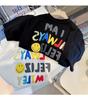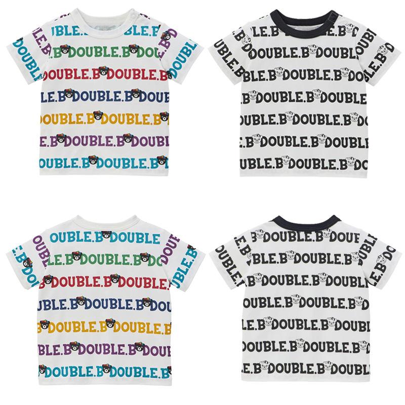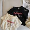 Nueva camiseta de manga corta con estampado completo de letras y oso negro de dibujos animados para niños y niñas