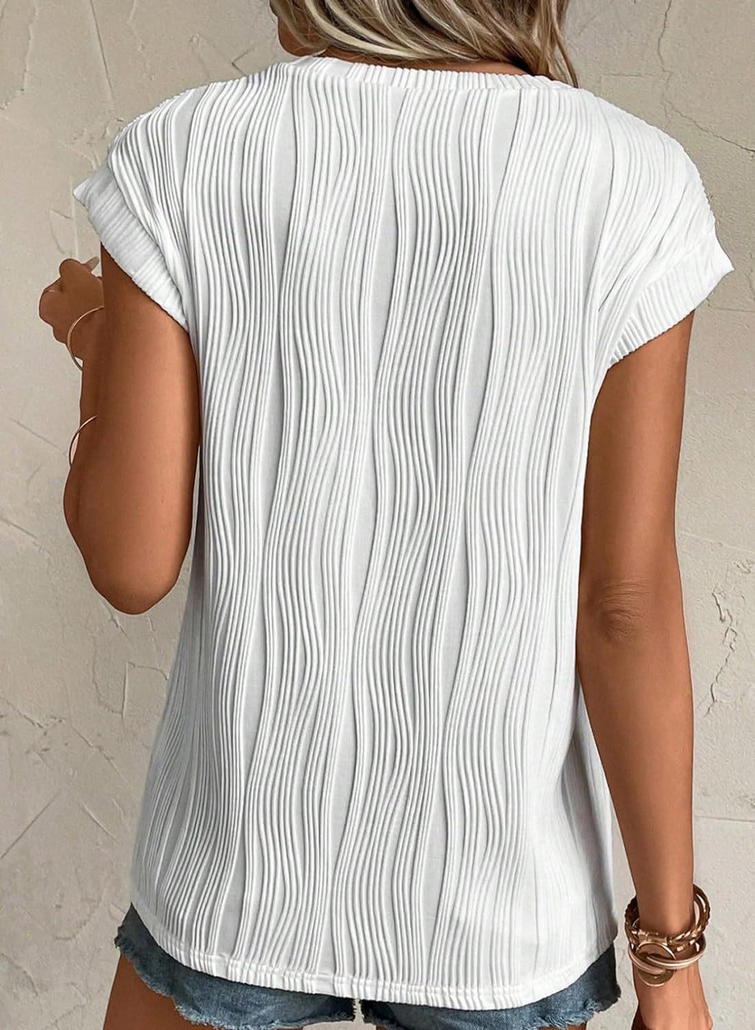 Camiseta de verano de color sólido con cuello redondo y manga corta de moda europea y americana para mujer de comercio exterior transfronterizo de Amazon 2024