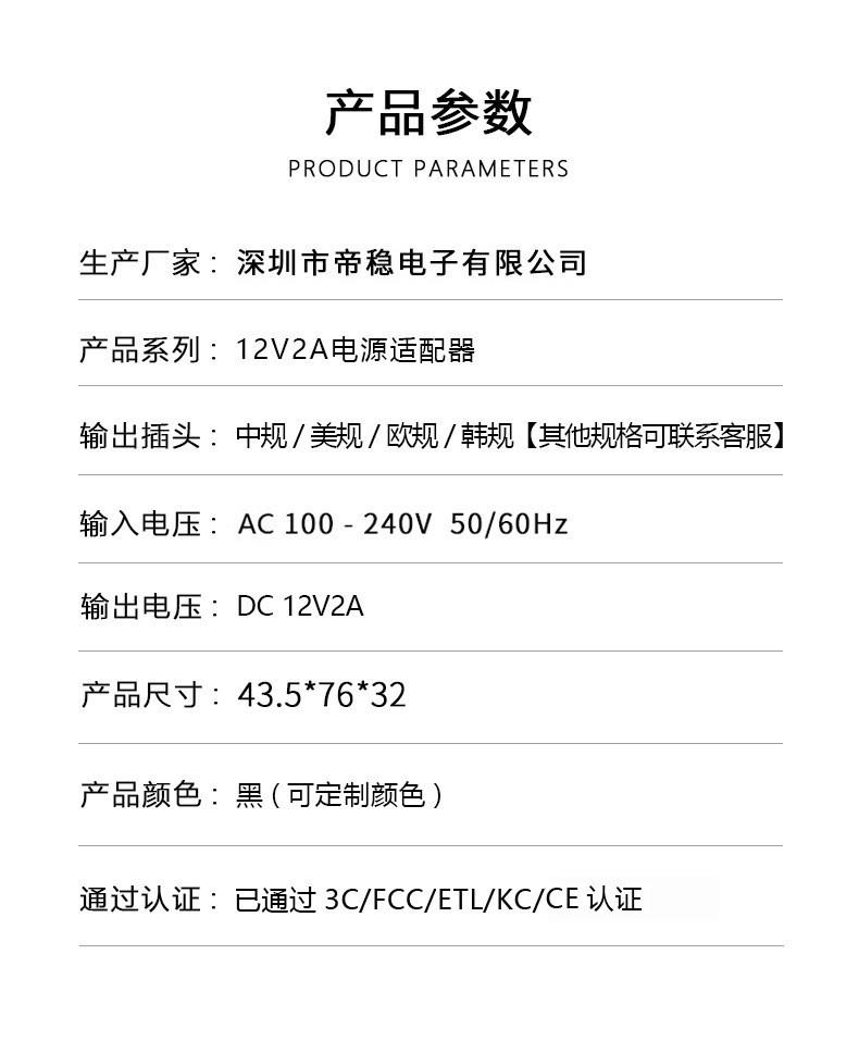 Adaptador de Corriente 12V2A Chino, Americano, Británico y Europeo Monitoreo 12V2A 24W Lámpara de Escritorio Estabilización de Voltaje