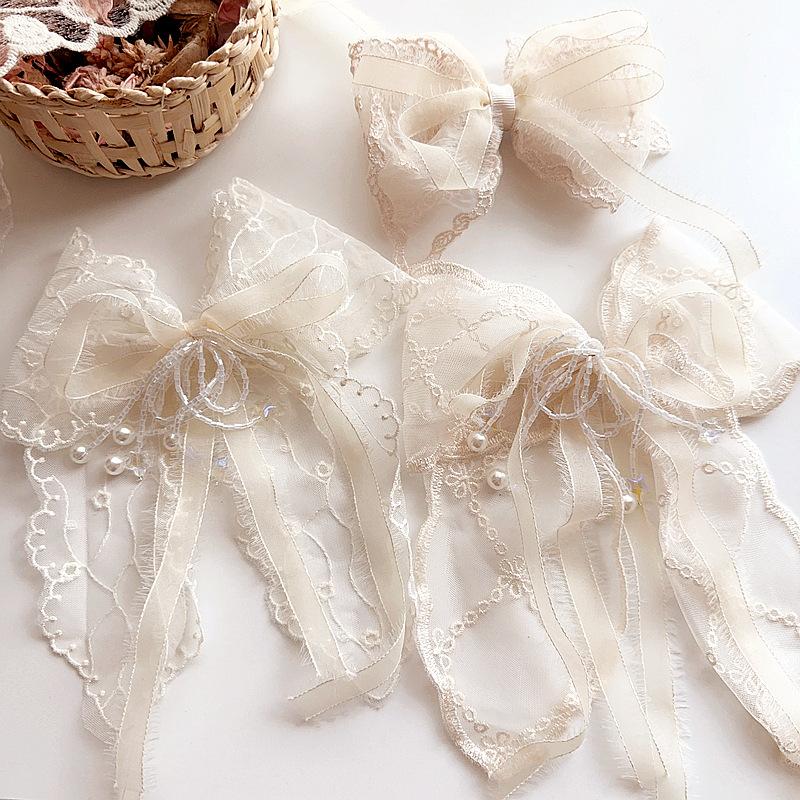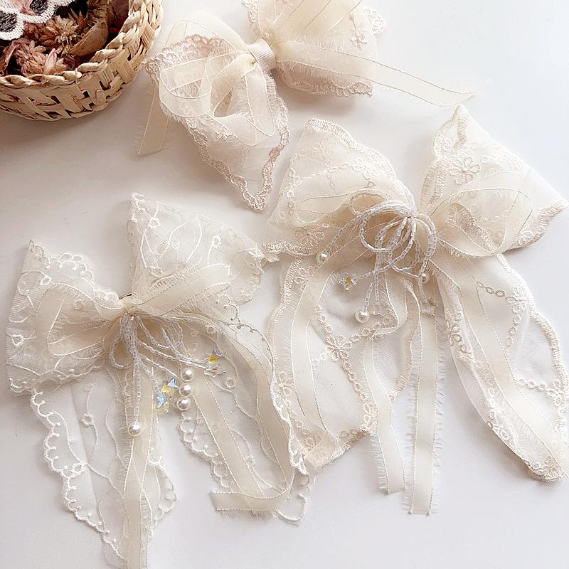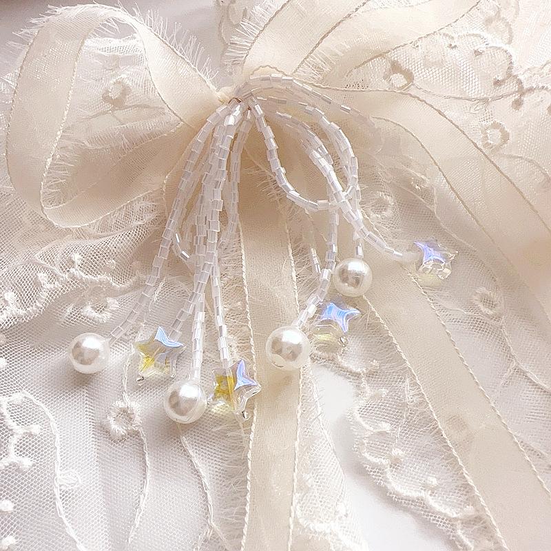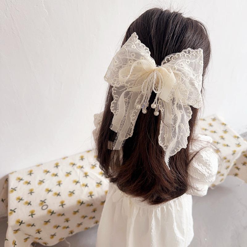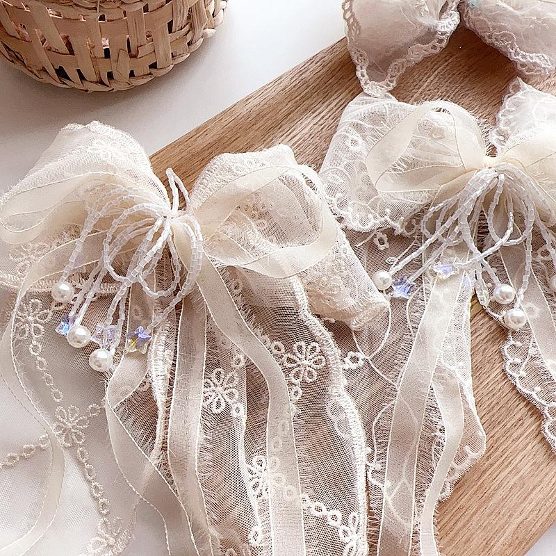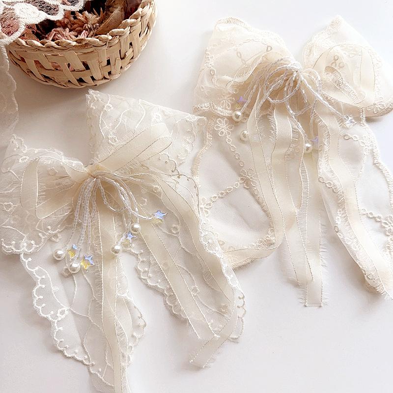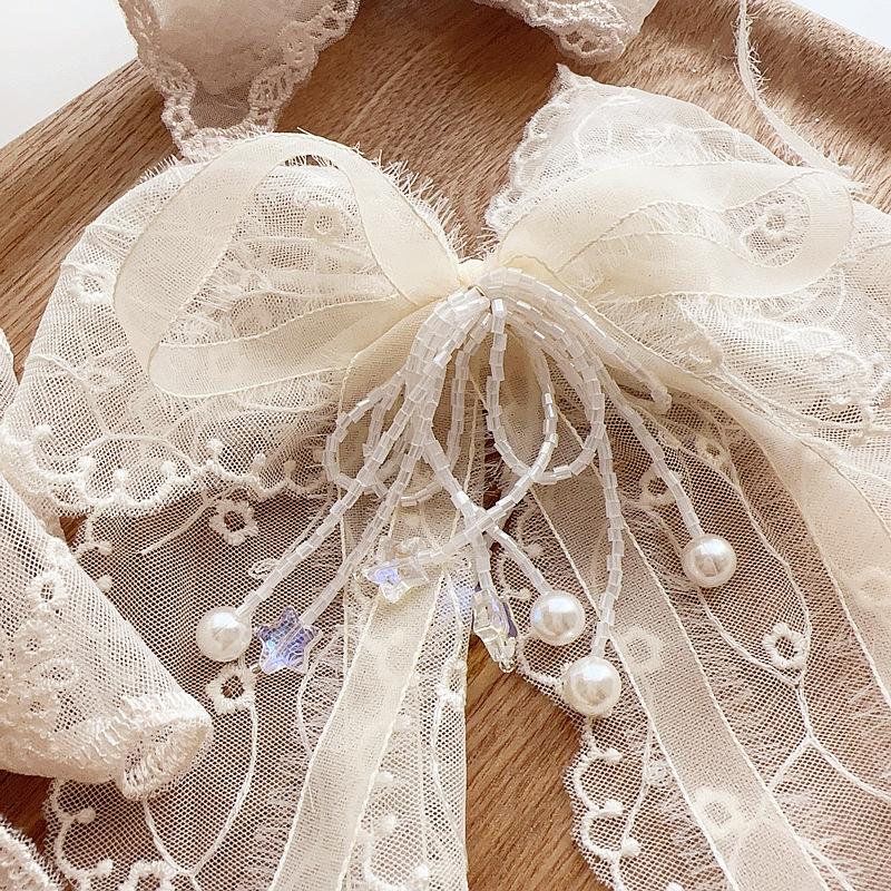 Nuevo lazo de encaje francés retro con borlas de cuentas de cinco estrellas y cinta de hada súper dulce con clip superior, accesorios para el cabello, tocado