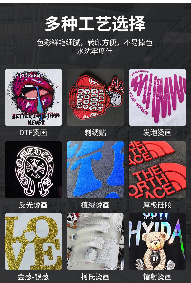 Impresión digital directa por inyección de prendas, camisetas personalizadas, sudaderas, impresión transpirable sin brillo.