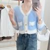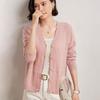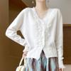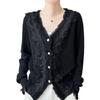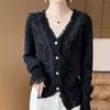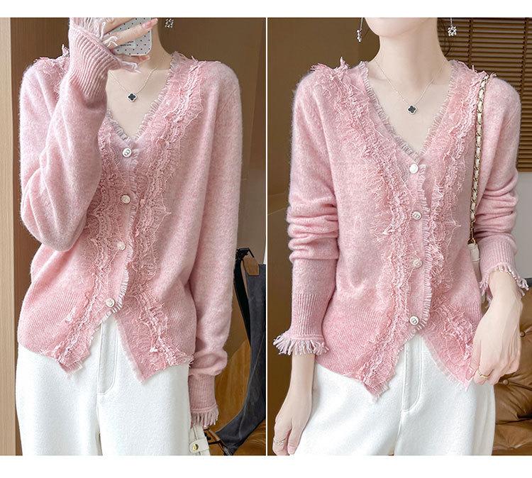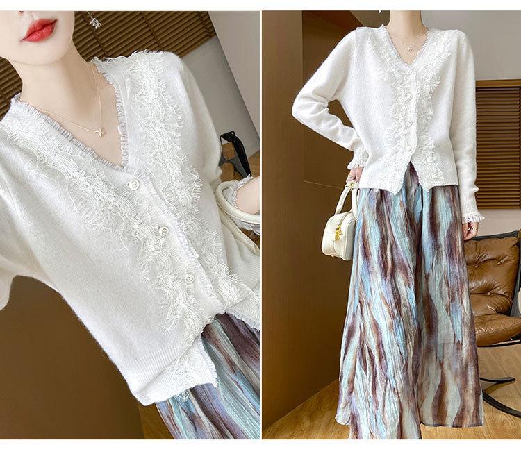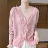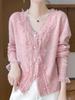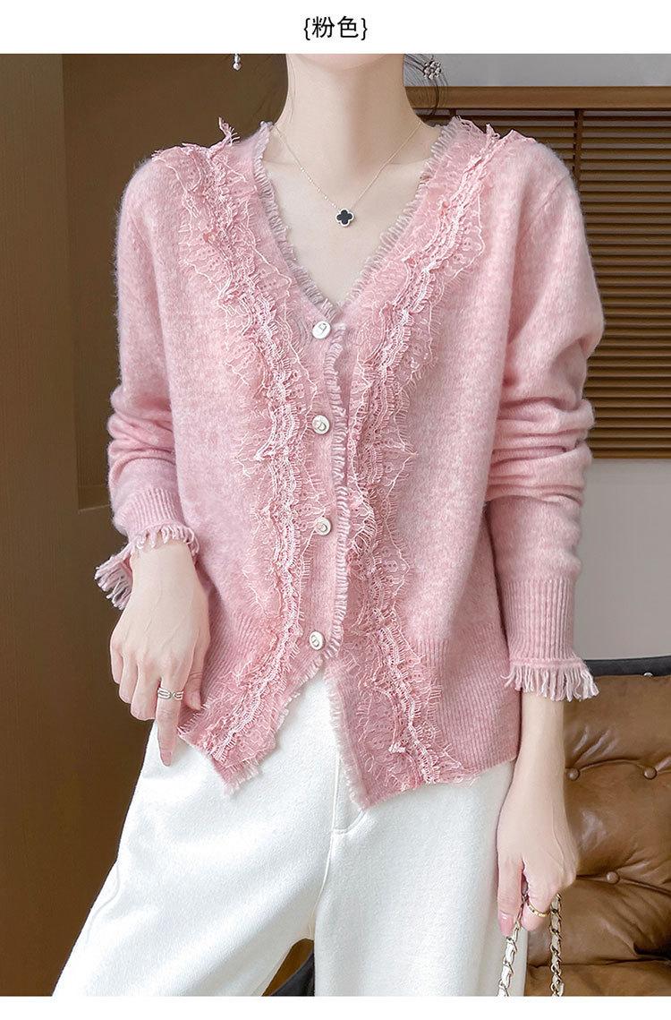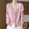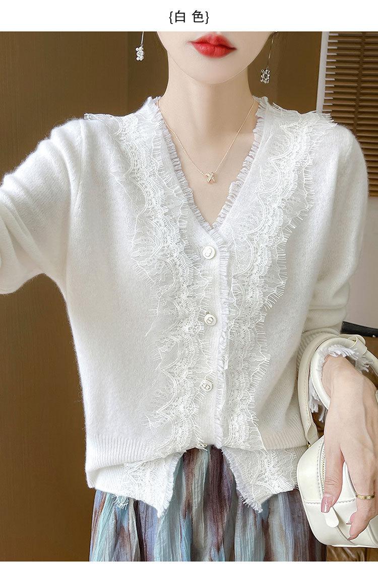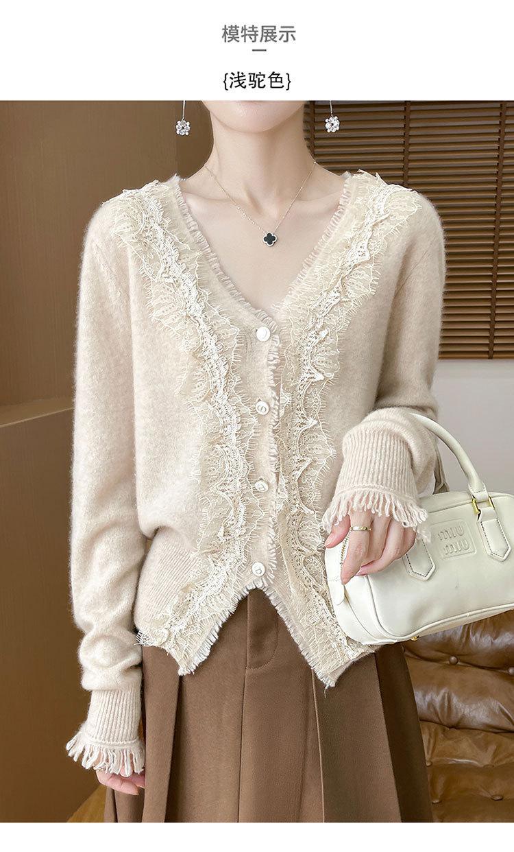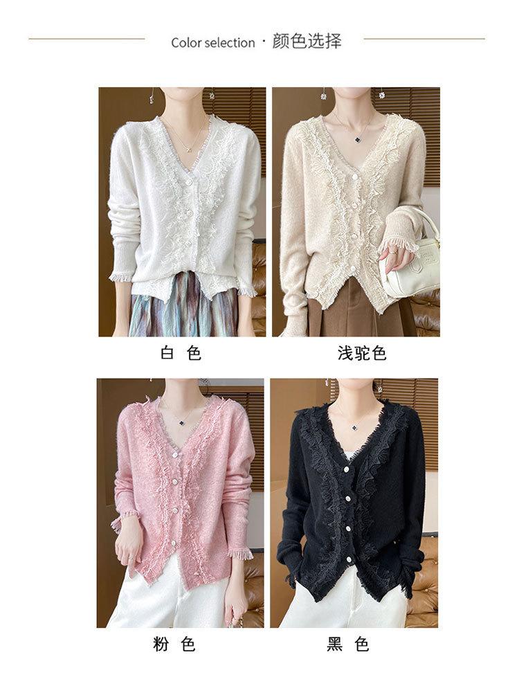 Suéter de Lana Nueva Estilo Chanel para Principios de Otoño para Mujer, Suéter de Encaje con Costuras, Cuello en V, Cárdigan de Cachemira, Top, Suéter de Manga Larga