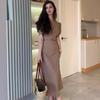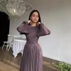 Otoño 2024 Nuevo Vestido Europeo y Americano Transfronterizo Amazon Transfronterizo para Mujer de Color Sólido con Pliegues en la Cintura y Corte Ajustado