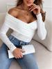 Comercio exterior transfronterizo Ropa de mujer europea y americana Amazon AliExpress 2024 otoño e invierno moda sexy chaqueta de camiseta de manga larga con hombros descubiertos