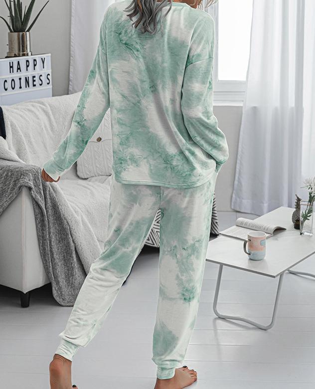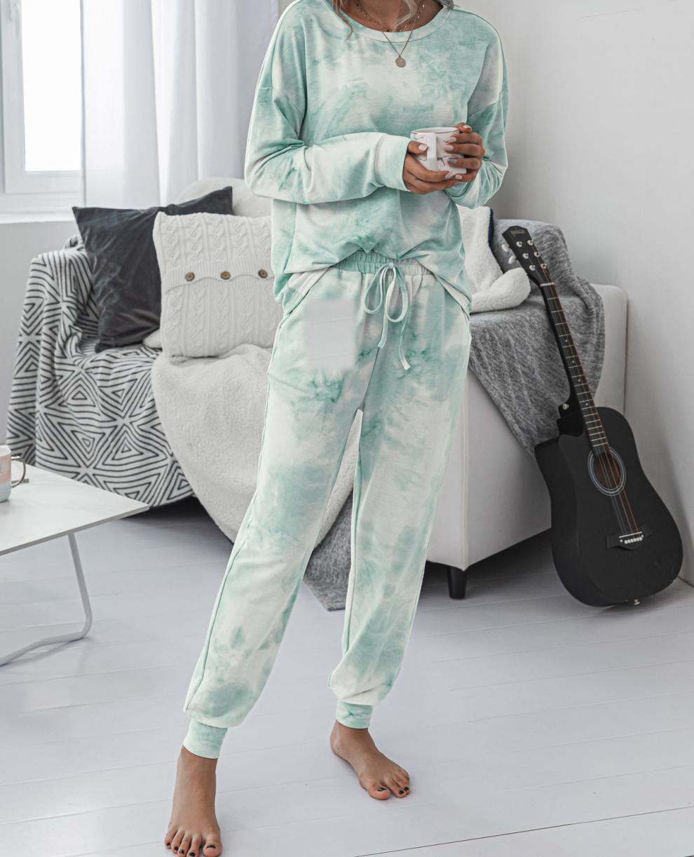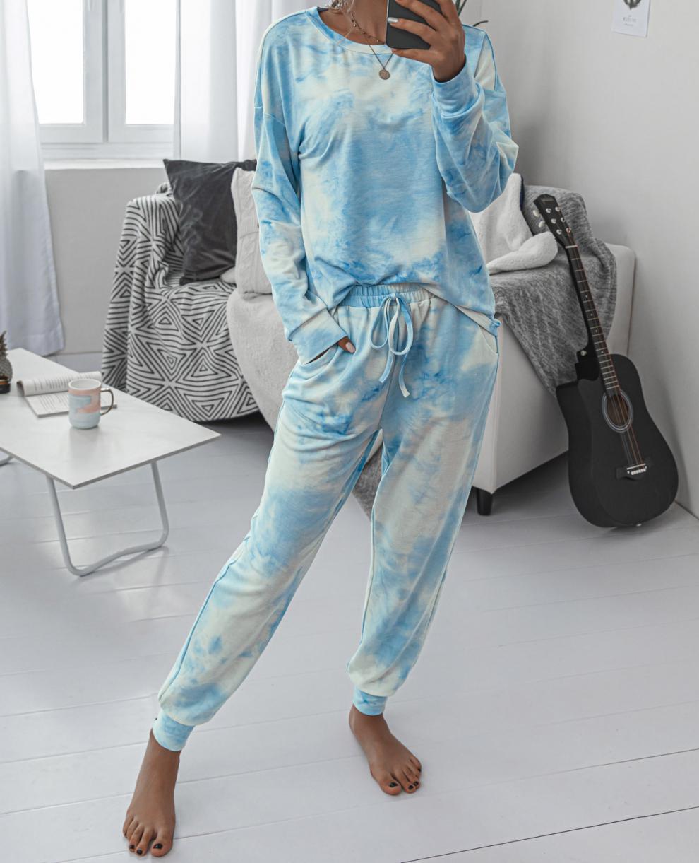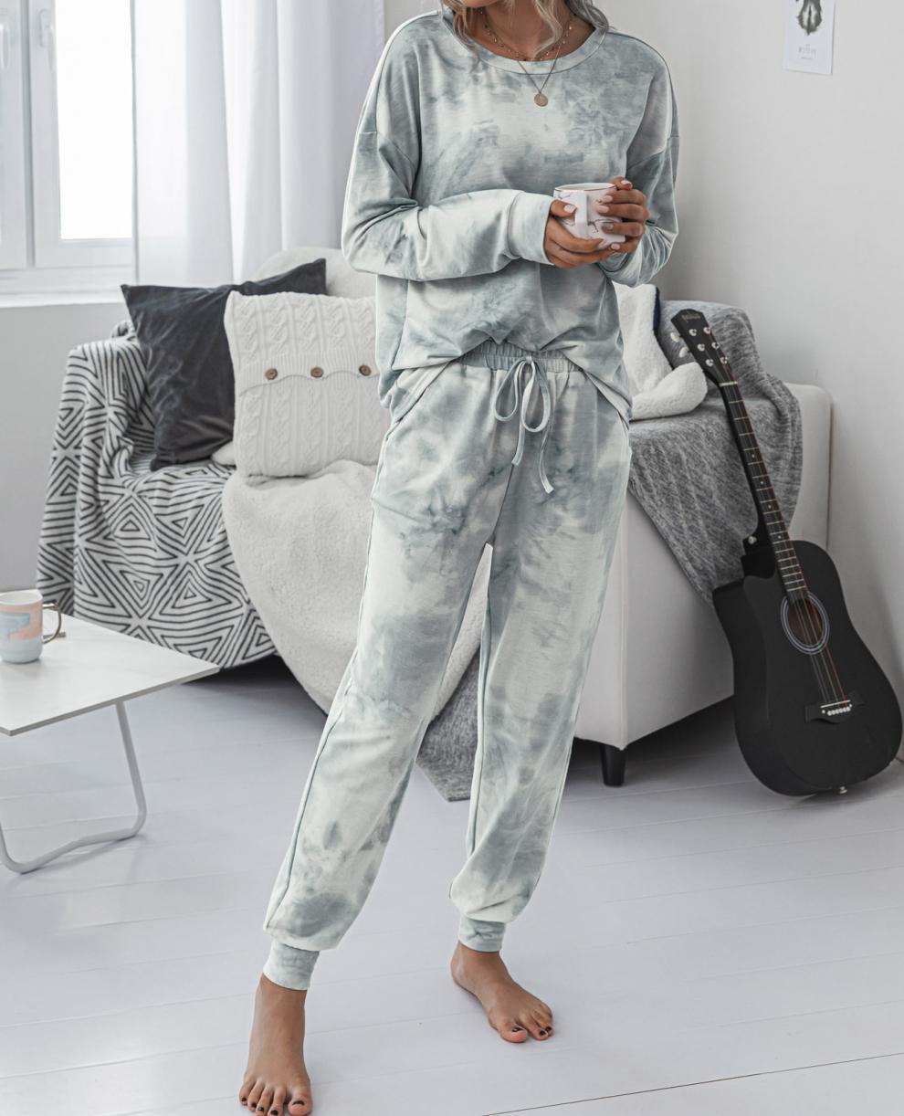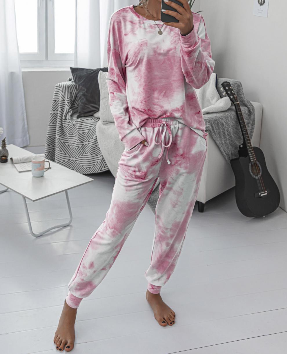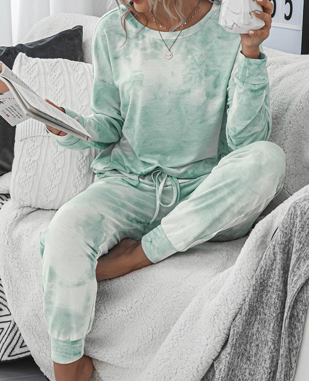 Traje deportivo informal de manga larga con cuello redondo y estampado tie-dye para mujer, estilo europeo y americano, disponible en Amazon y AliExpress, otoño e invierno.